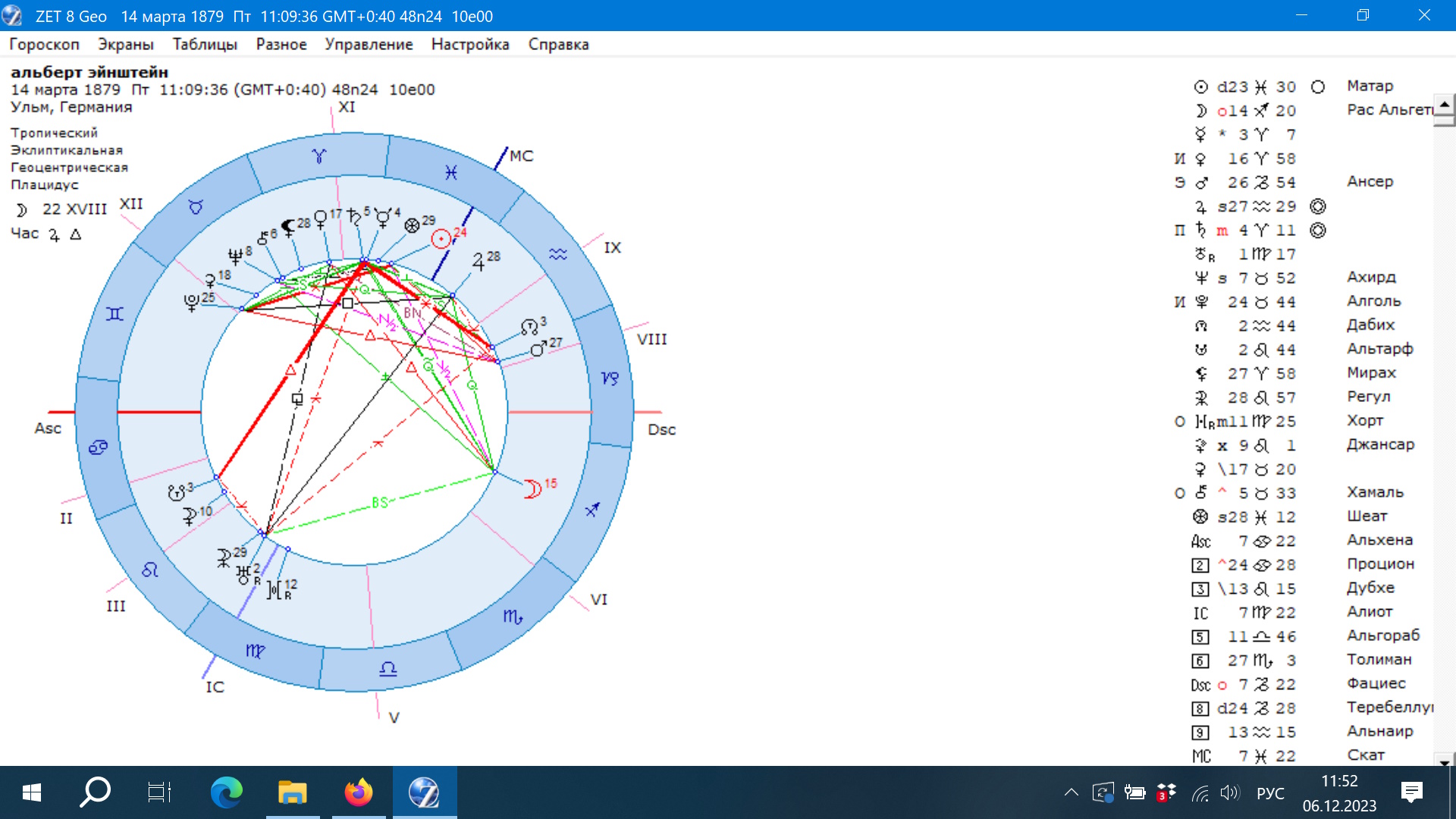 Еще один пример Винсент Ван Гог, тоже известны факты его психических нервных расстройств. У него в гороскопе мы видим Нептун в соединении с Марсом и Плутоном на вершине 12 дома и в квадратуре к Меркурию в Рыбах. Видим здесь тот пораженный Нептун, 12 дом и знак Рыбы.