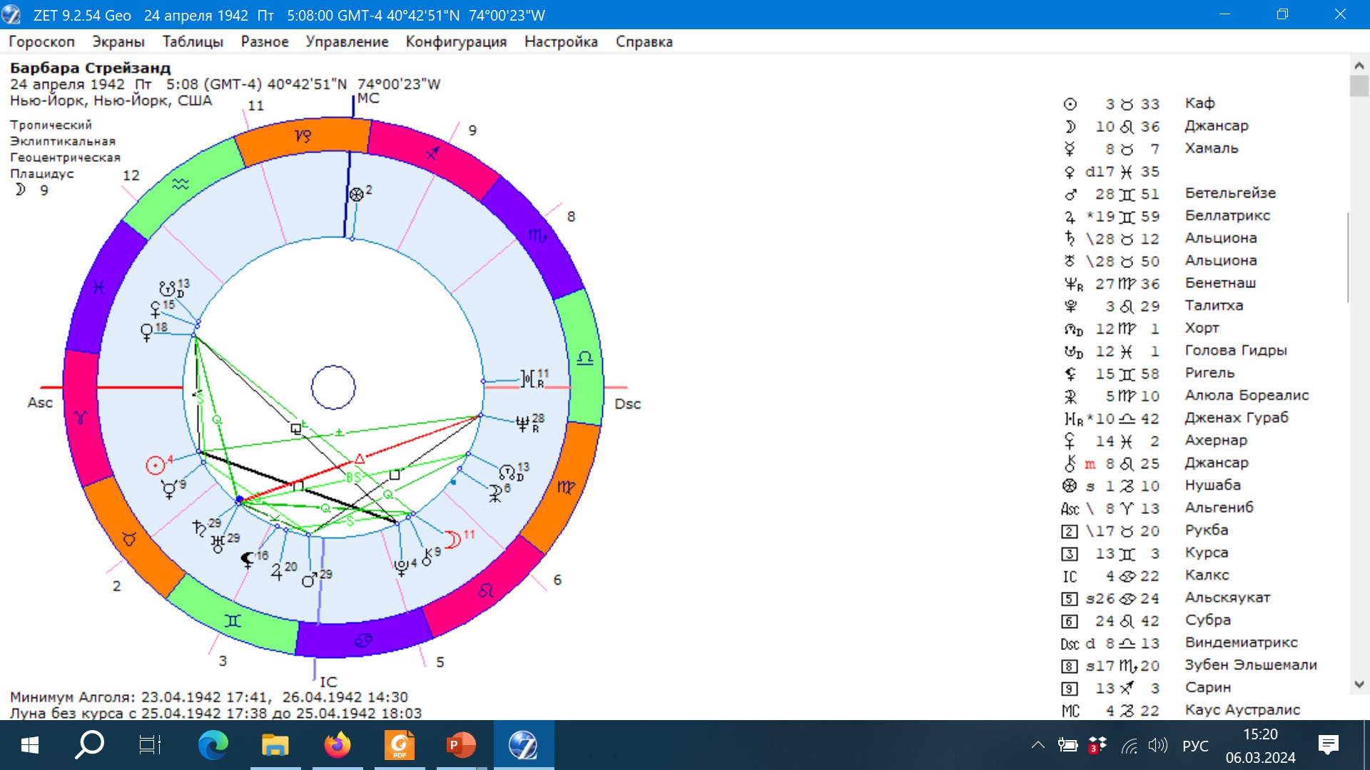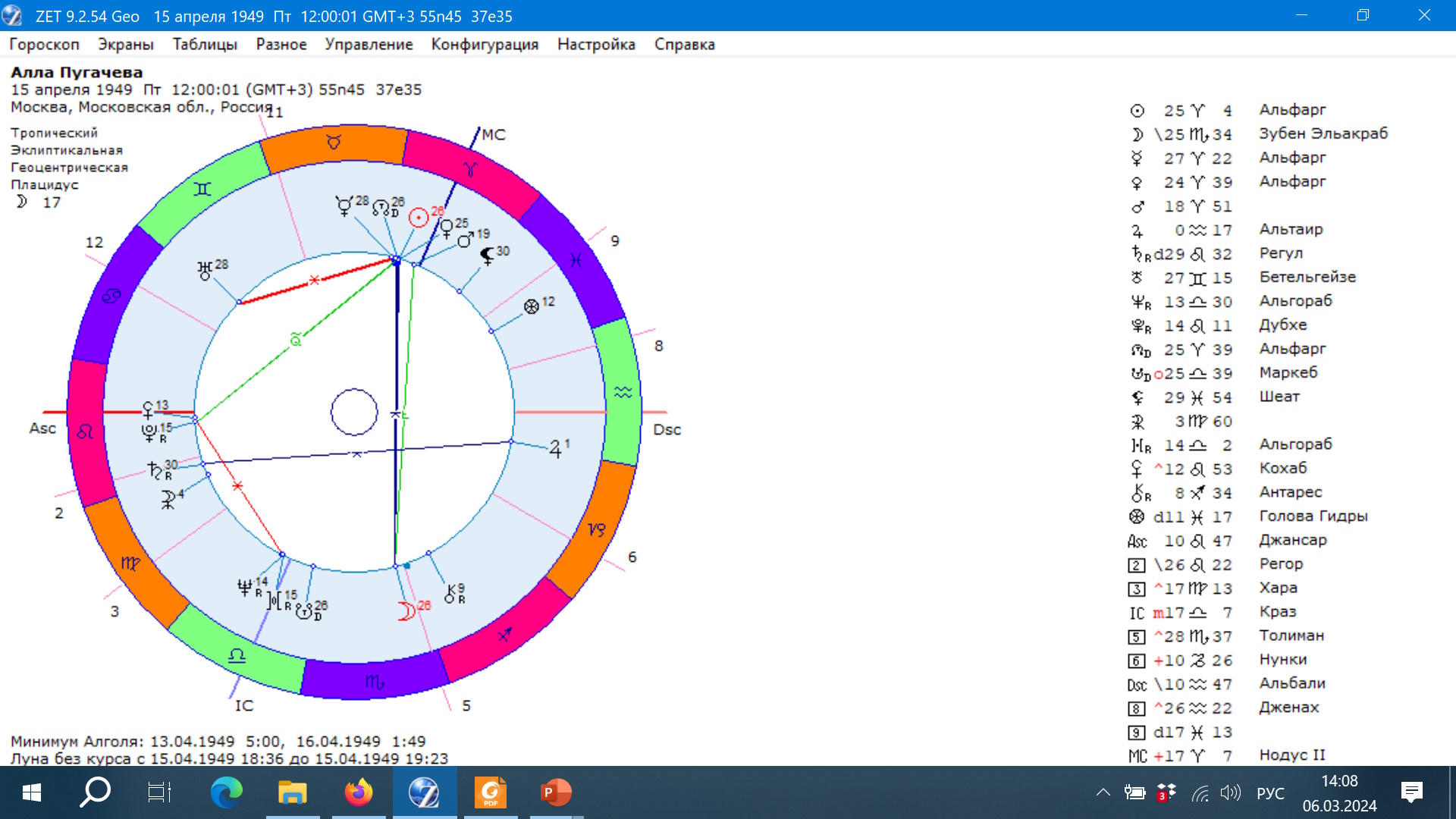 Работа с гороскопами участников.