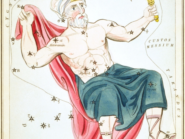 Созвездие Цефея занимает почётное место рядом с полярной звездой и соответственно входит в группу элитарных – придворных созвездий неба. В античной мифологии Цефей (он же Кефей) был царём Эфиопии, который ради спасения своего народа принёс в жертву свою любимую дочь. Главная звезда созвездия - Альдерамин, никогда не заходит за горизонт, в северном полушарии вплоть до 27 градуса с.ш. Она совершает за сутки малый круг вокруг полюса - всегда оставаясь на небе.