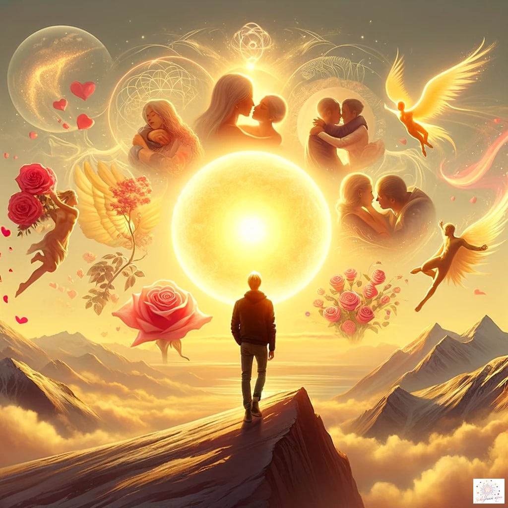 Его присутствие в мире любви подобно солнцу, которое освещает и согревает всё вокруг, принося жизнь и благополучие. Король Любви - это не только символ любви, но и её активный создатель и вдохновитель, постоянно распространяющий её сущность во все уголки Вселенной.