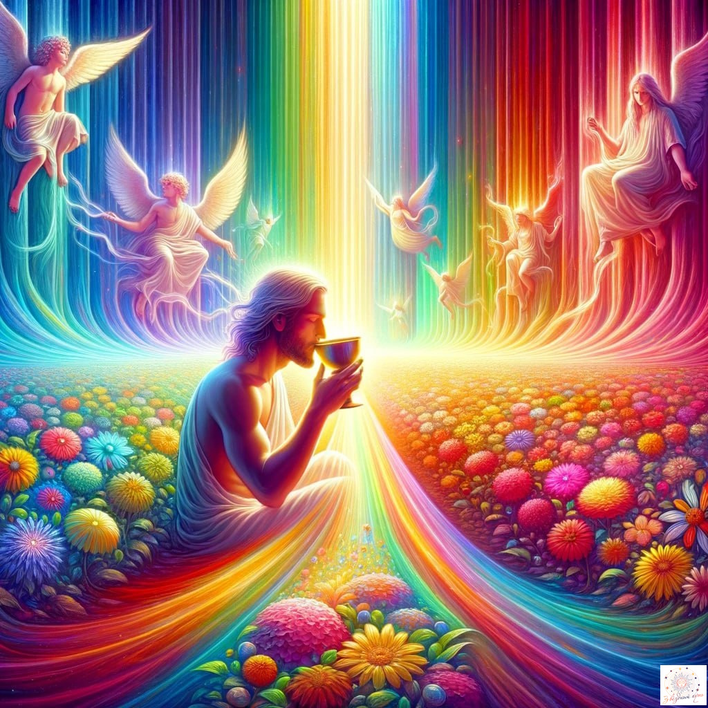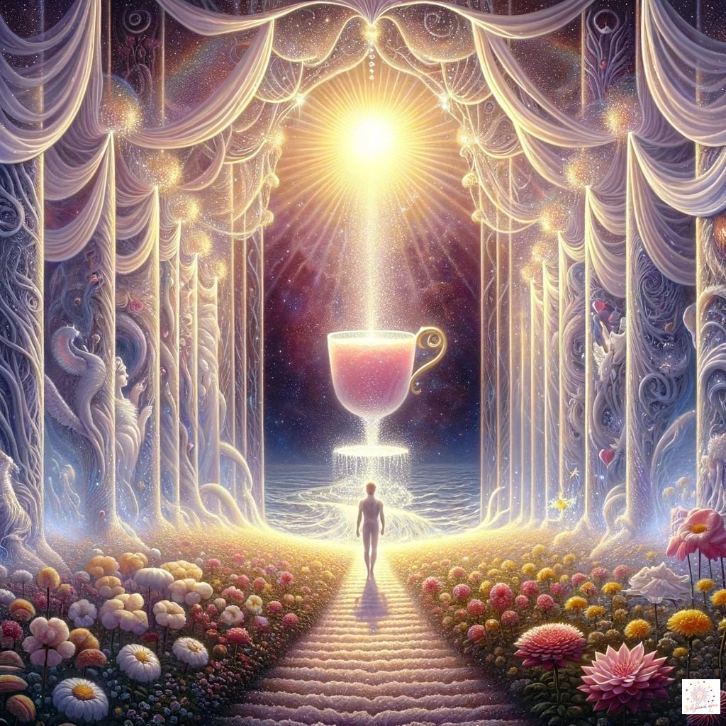 Перед вами стоит кубок любви. Вы пьете божественный напиток. Клубящаяся туманом и сверкающая искрами жидкость проникает в вас. Ваше тело меняется. Ваша энергетика выравнивается, гармонизируется по вертикали и горизонтали.