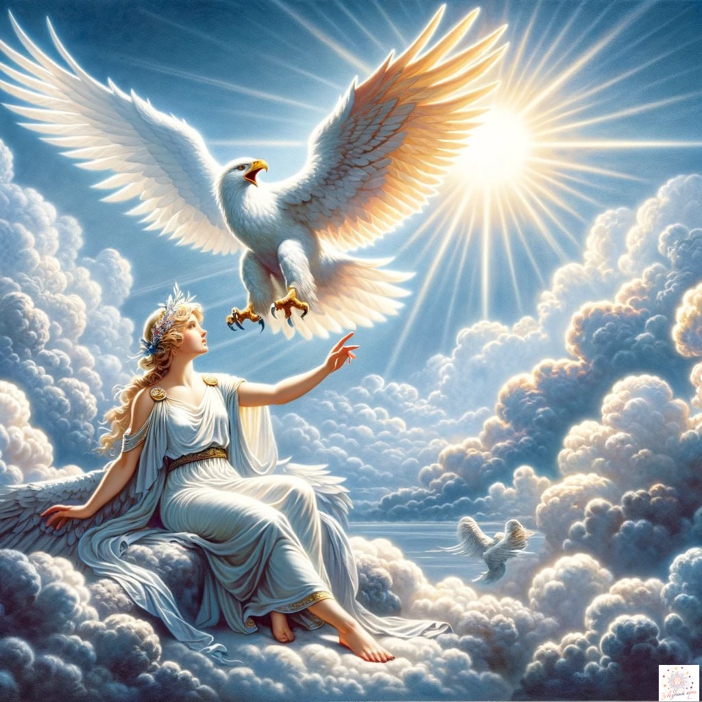 Миф о Зевсе в образе белоснежного орла и Леде. У Леды родились близнецы Кастор и Поллукс.