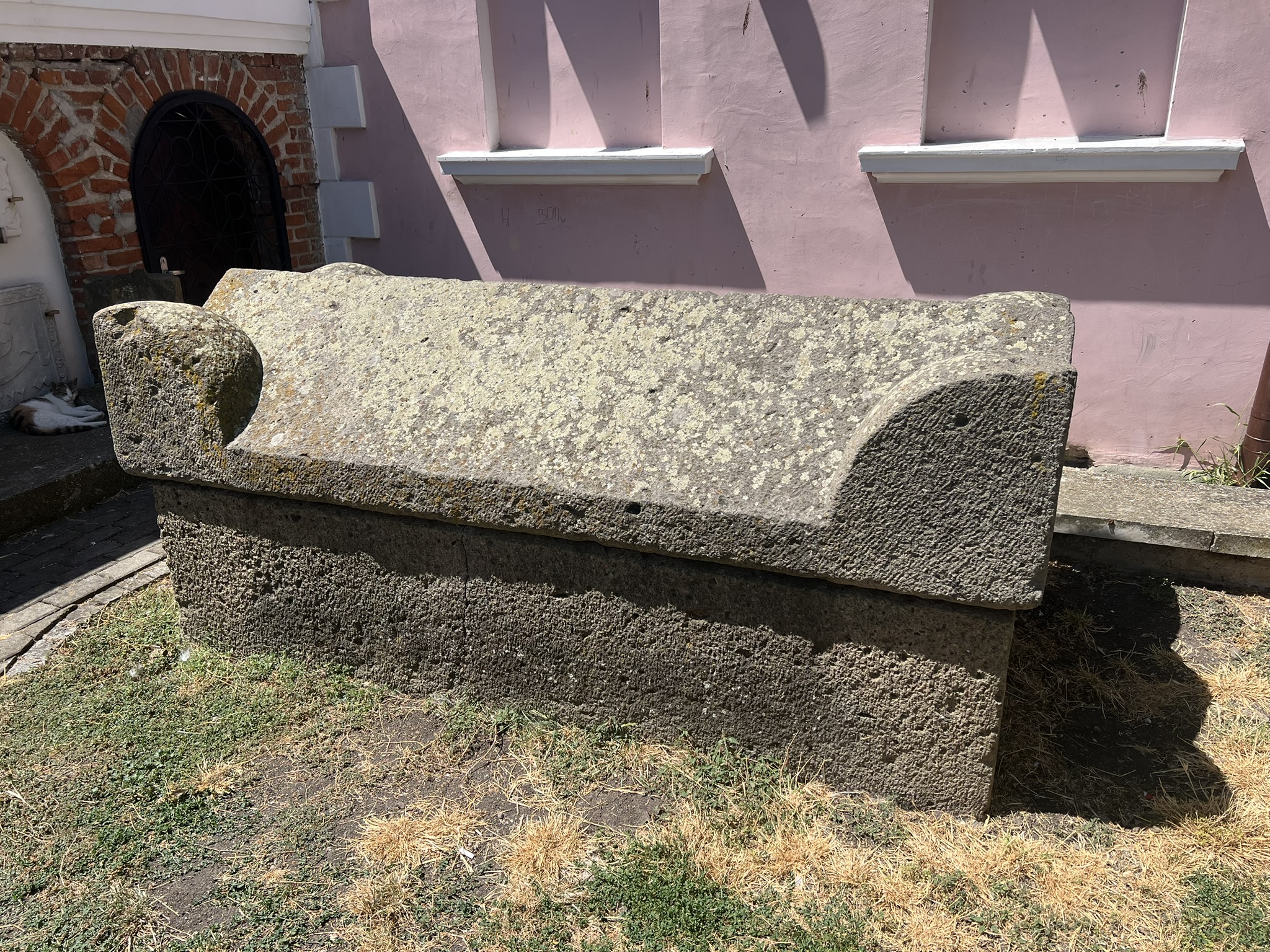 Слева от входа в музей находится каменный дольмен из Странджи,
