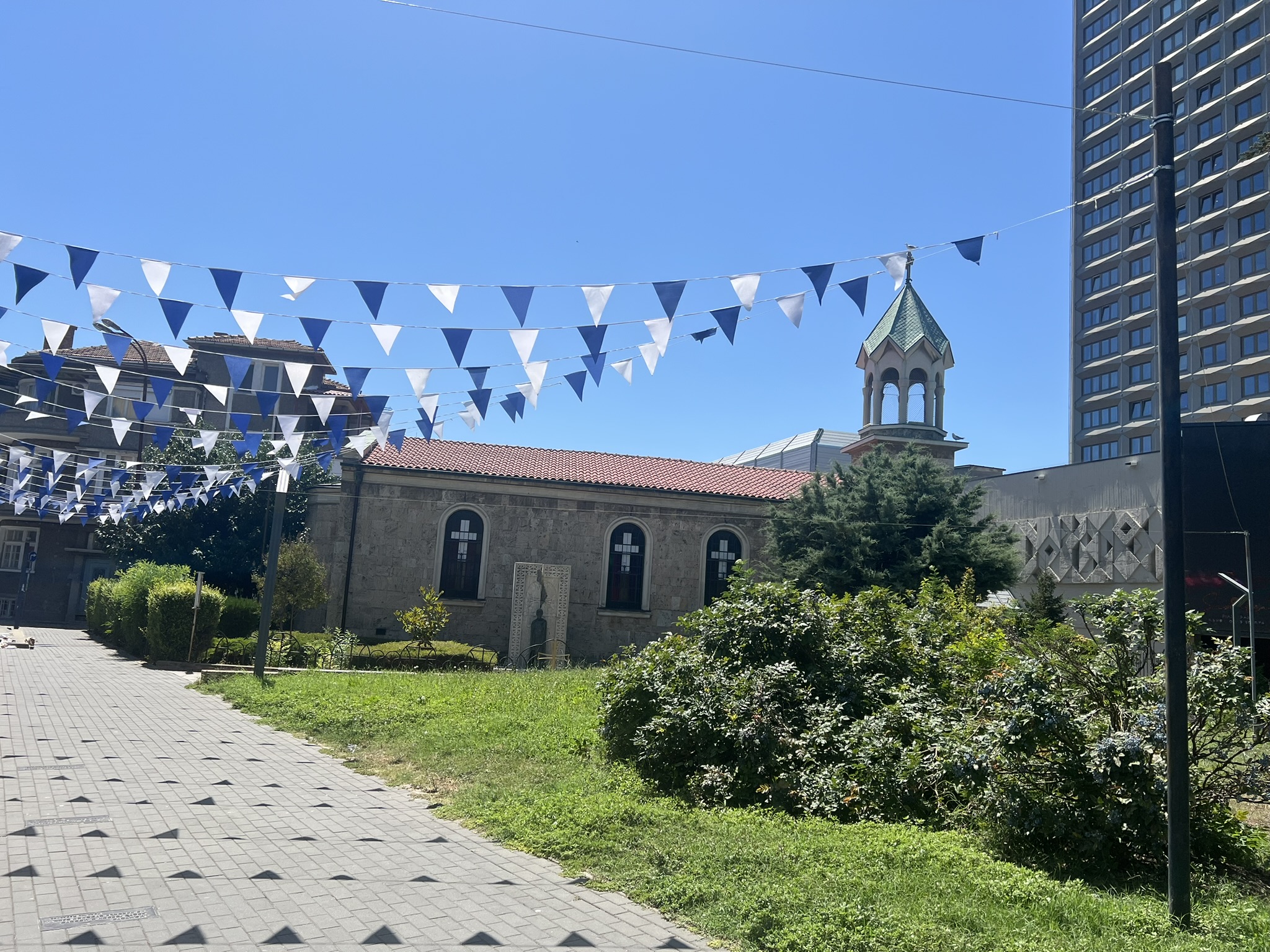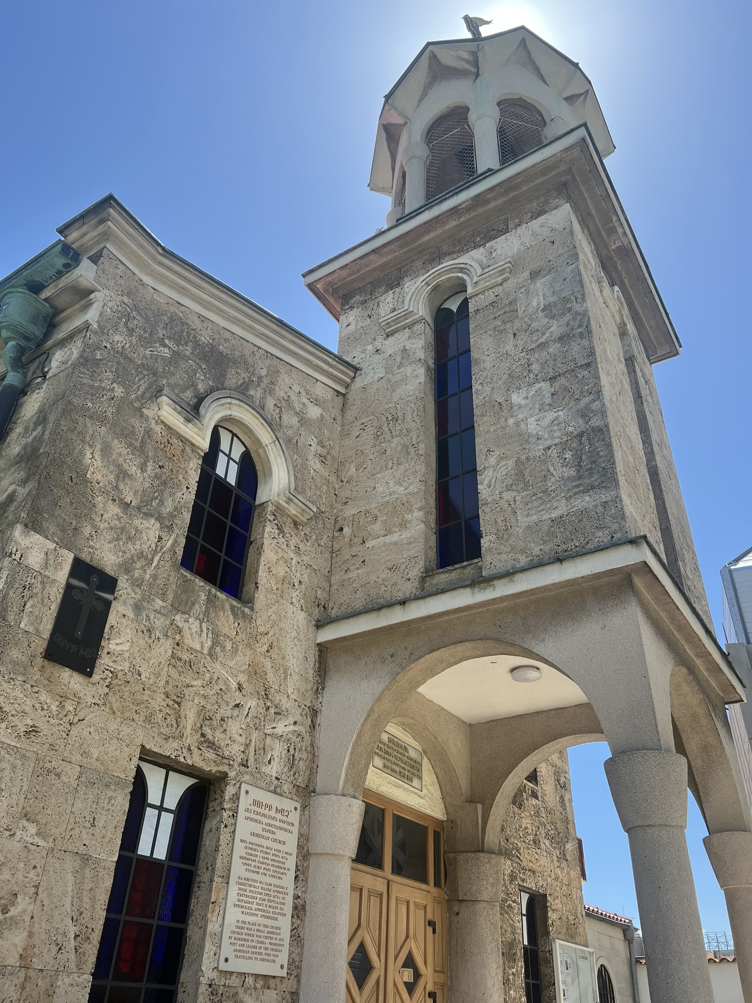 За армянской церковью виднеются купола еще одного храма. Через несколько дней вечером я к нему сходила. Дорога идет мимо музея невозможного.