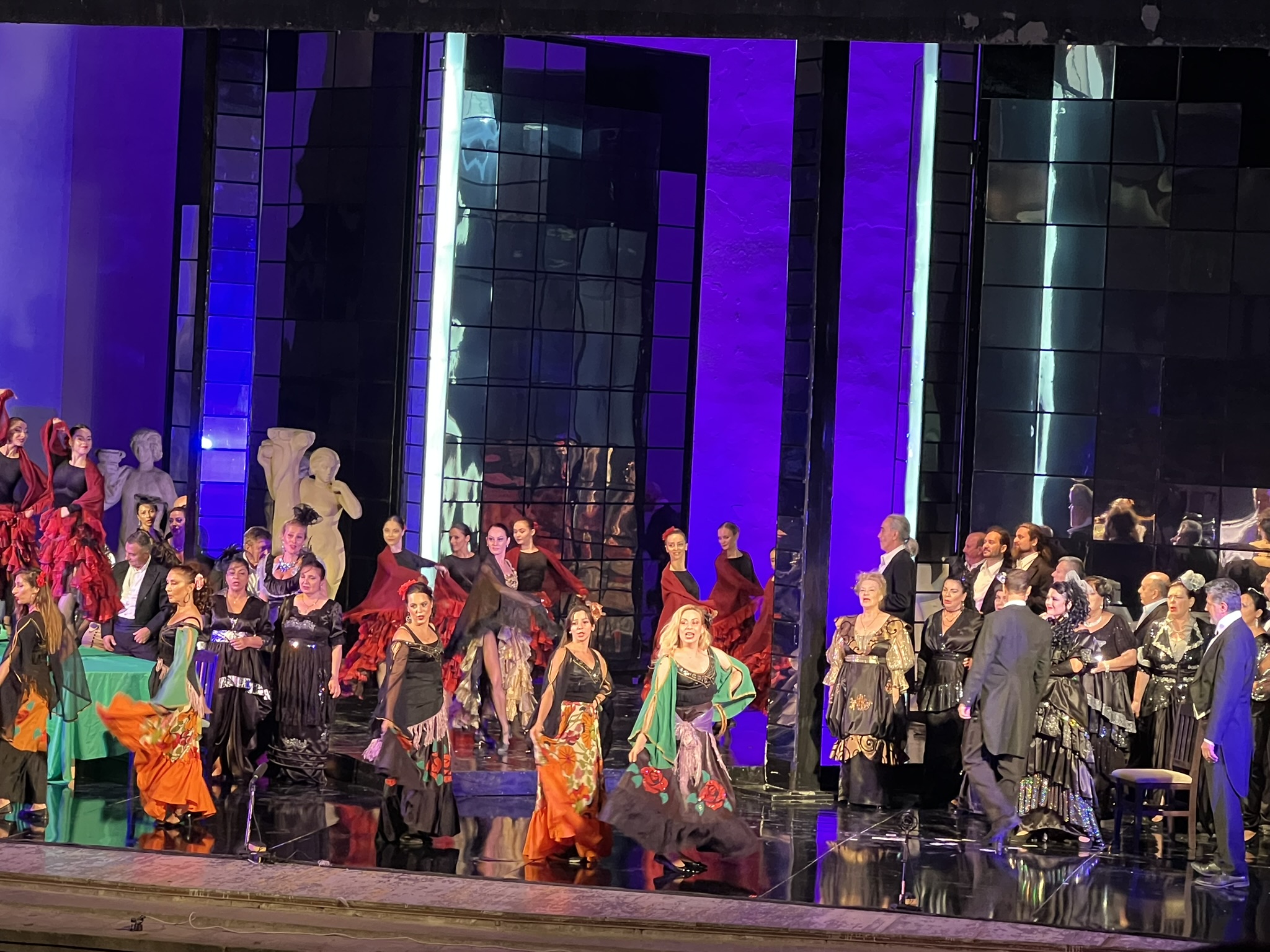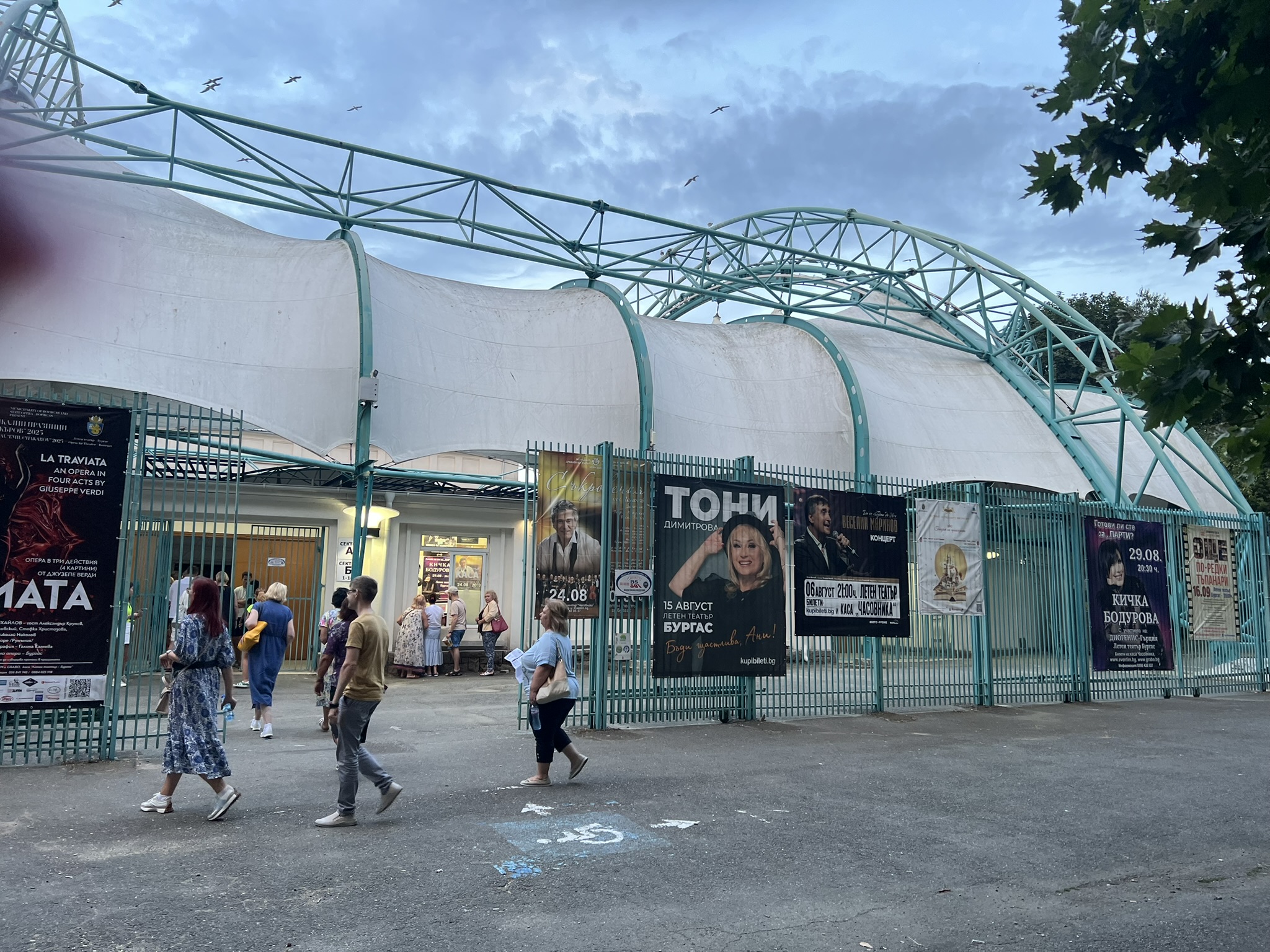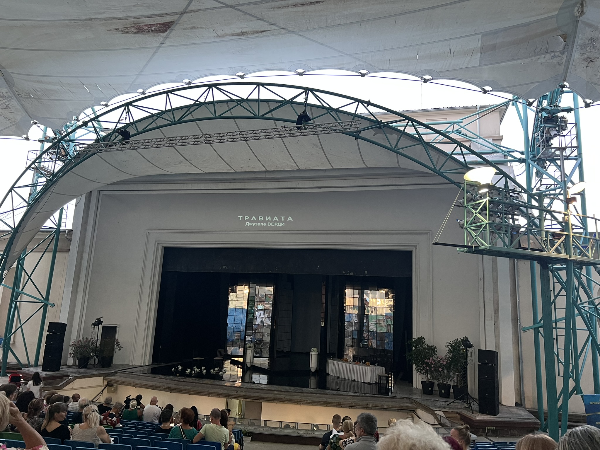 Я решила не откладывать театр и вечером купила билет на Травиату. Начало знаменитой оперы было в 20 ч 30 минут. Представление шло три часа. Прекрасная музыка Верди, живой орекстр и великолепное исполнение певцов привели меня в хорошее настроение. Я как-будто вернулась в детство с лагерными кинотеатрами. Опера шла в летнем театре.
