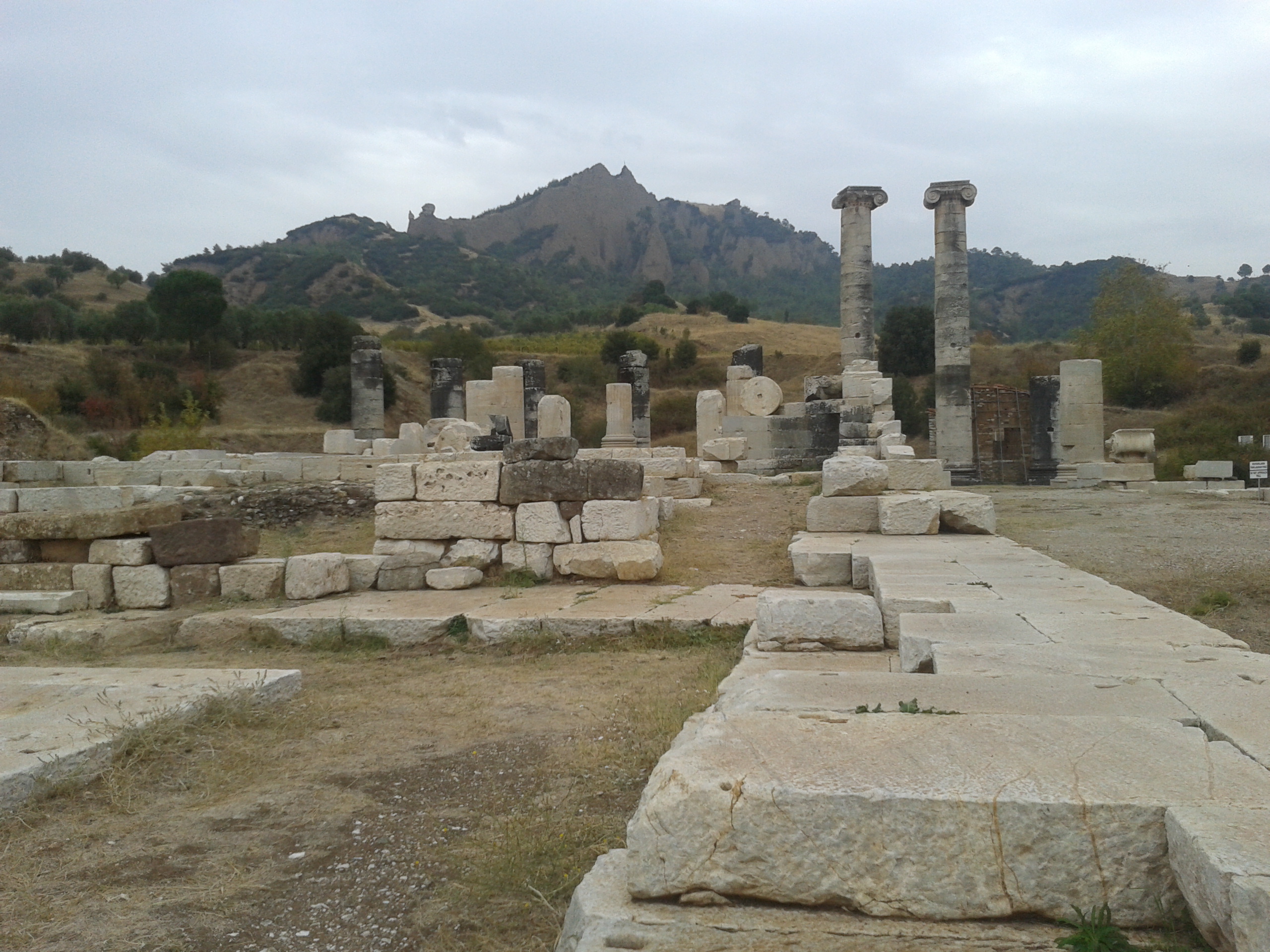 Пошёл дождь. Попросила водителя остановиться на повороте на Сарды (8 км не доезжая до города Салихлы). Зашла в кафе и спросила в какую сторону идти на Сарды. При этом сбежались все, кто был в кафе, махали руками, указывая мне направление. Я поняла, что идти километр. Пошла по дороге, ведущей вверх и в горы. Через несколько минут рядом со мной остановилась машина. В ней ехали девушка и парень. Они сидели в кафе и все слышали. Девушка вышла и предложила меня подвезти. Так я попала в древние Сарды.