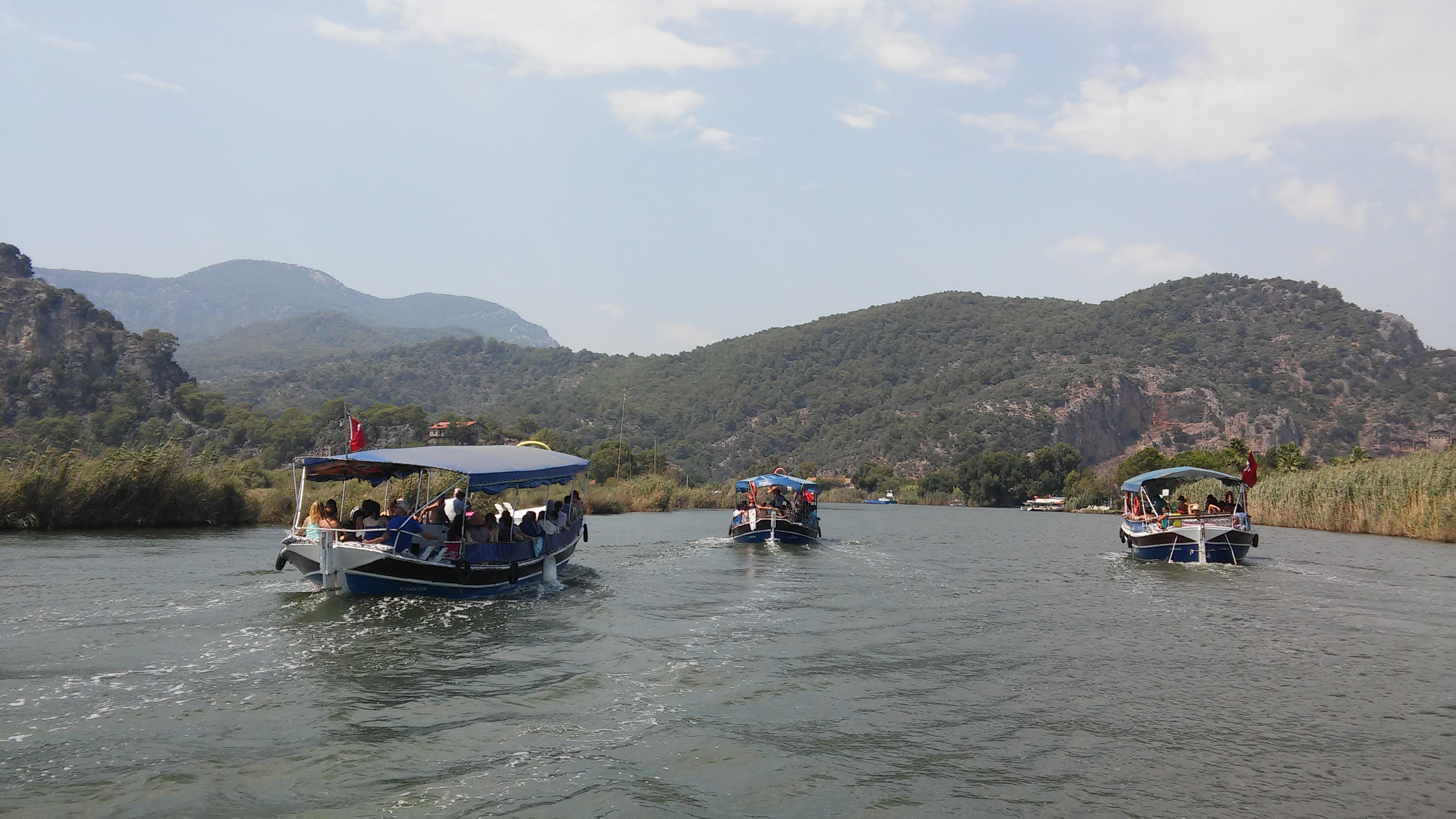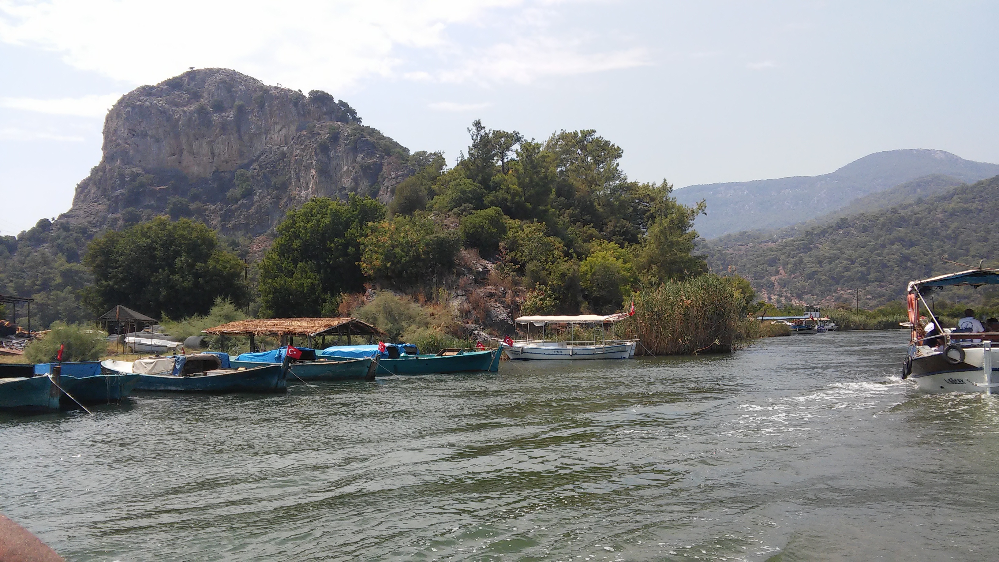 всех туристов на лодках повезли по реке Дальян мимо ликийских гробниц к