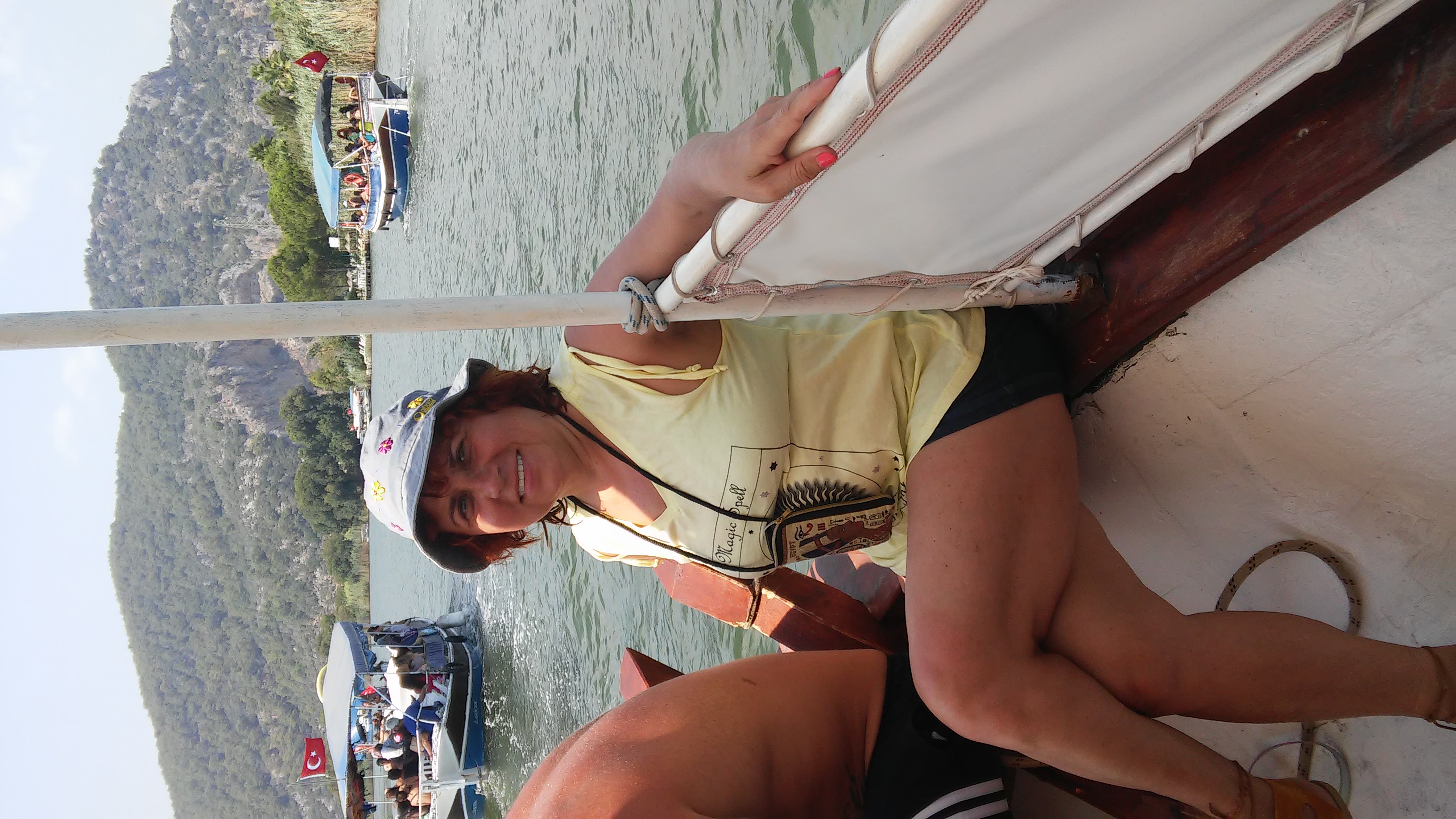За рулем была женщина, а в машине сидели две её дочери. Они предложили подвезти меня до Кауноса. Пока мы искали дорогу в древний город при повороте машиной толкнули два мотоцикла. Мы выбежали из машины и подняли их, приставили отвалившиеся части, ключ зажигания. И так, наши приключения начались. У меня появилась новая подруга в Турции. Ее имя Нида. Я приоткрыла для себя мир турецкой жизни. Люди отзывчивые, добрые, без хамства.