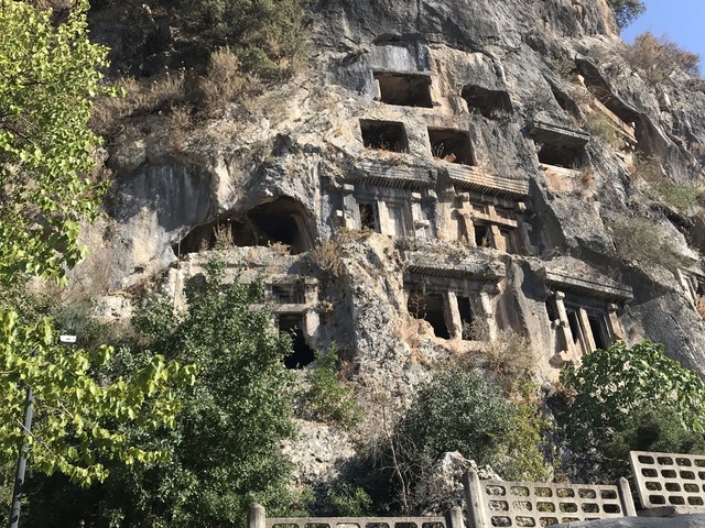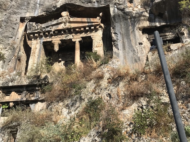 Все, что осталось от античного города Телмессоса, сейчас город Фетхие - ликийские гробницы, возвышающиеся на скале над городом и всей бухтой, амфитеатр и разбросанные повсюду домики-саркофаги.