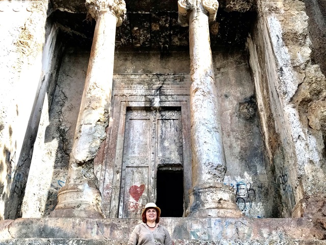 Точно такое же украшение я видела на двери в ликийской гробнице Беллерофонта в Тлосе. Эти большие круги, по-видимому, что-то означают. За дверью нет ничего. Она ложная. Но это дверь в другой мир. В ликийских гробницах я все время вспоминала храмы Абидоса и Луксора в Египте.
