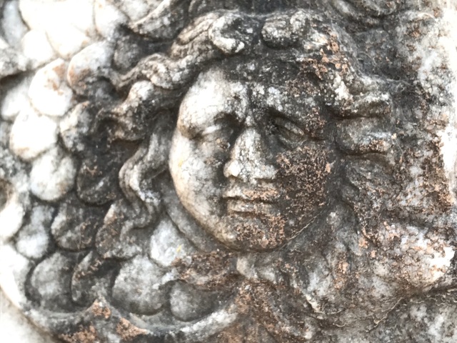 А вот и Медуза Горгона на груди античных фигур.