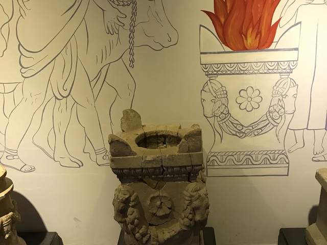 Античные скульптуры, римские монеты и золотые украшения.