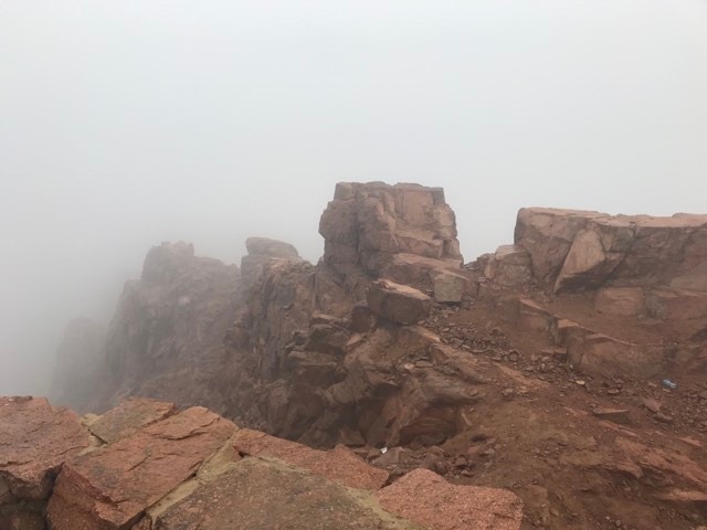 Кто-то из достигших вершины зажигает свечи, кто-то находит себе пещеру и сидит там. А я стою и смотрю в туман над пропастью.