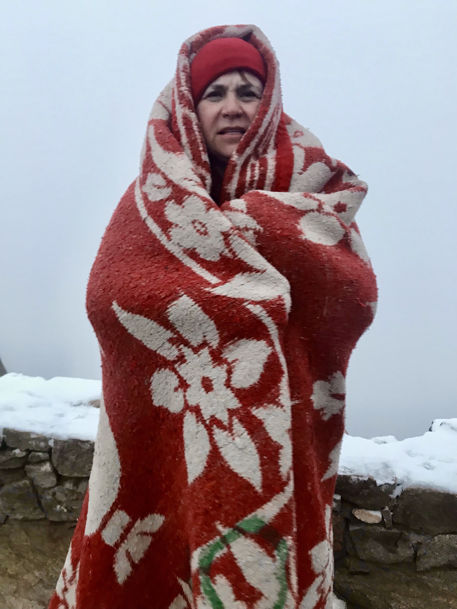 заледенели в перчатках и в одеяле. Вершина горы представляет из себя