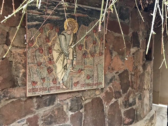 После спуска с горы Моисея идем в монастырь Святой Екатерины. Слева от входа находится место Неопалимой Купины, там где через горящий куст бог говорил с Моисеем.