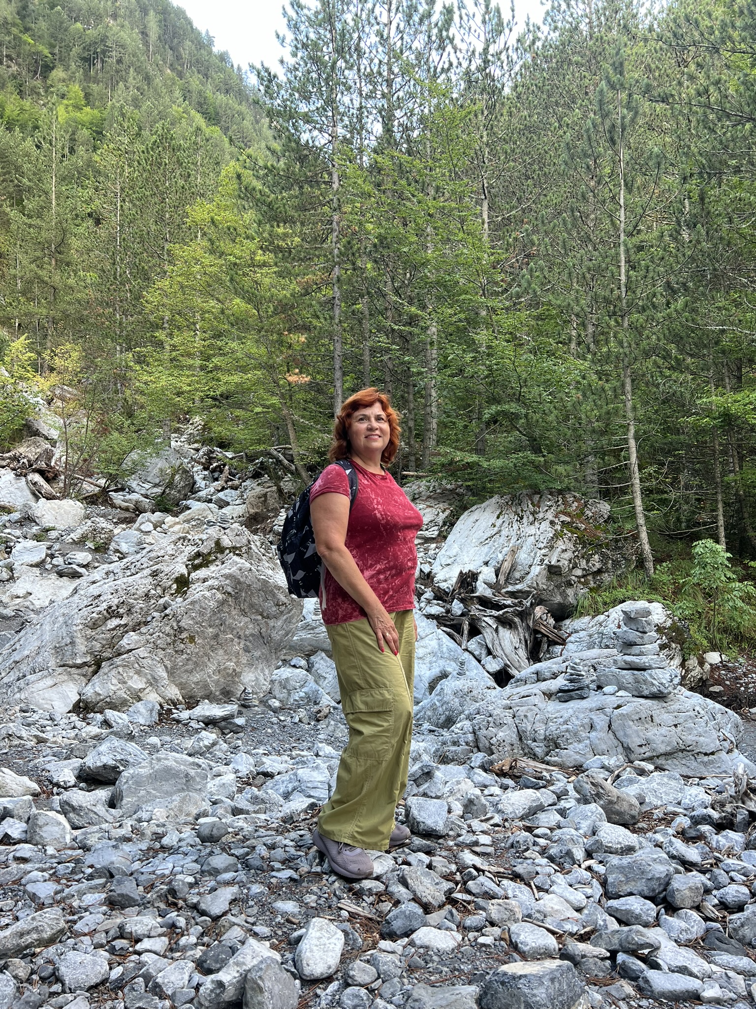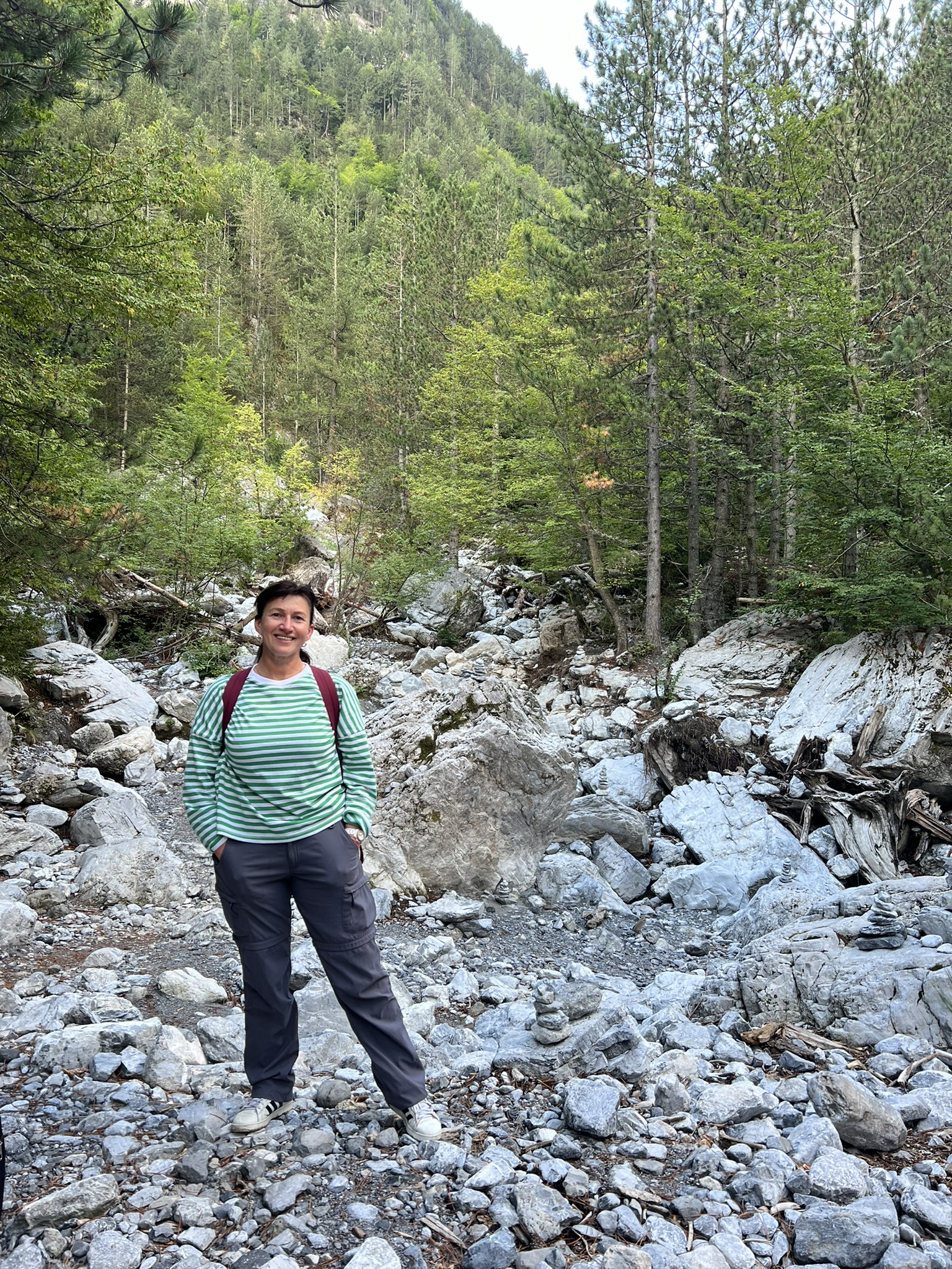, с другой каменная. С этим связана еще одна легенда о битве богов во главе с Зевсом против титанов во главе с Кроносом. Была длительная война гигантомахия. Великаны, сторукие чудовища ползли по горе и там остались царапины от их гигантских лап и с тех пор на том склоне горы Олимп ничего не растет. С каменной стороны можно подняться на вершину быстро за 2-3 часа. Но нужна хорошая спортивная обувь и одежда. У нас было предложение подняться с проводником быстрым, но опасным путем. Я приняла решение не рисковать людьми и мы пошли по длинной, но более простой тропе. Хотя после прохождения я не могу назвать подъем легким. Даже не представляю, насколько трудно пройти по каменной стороне.