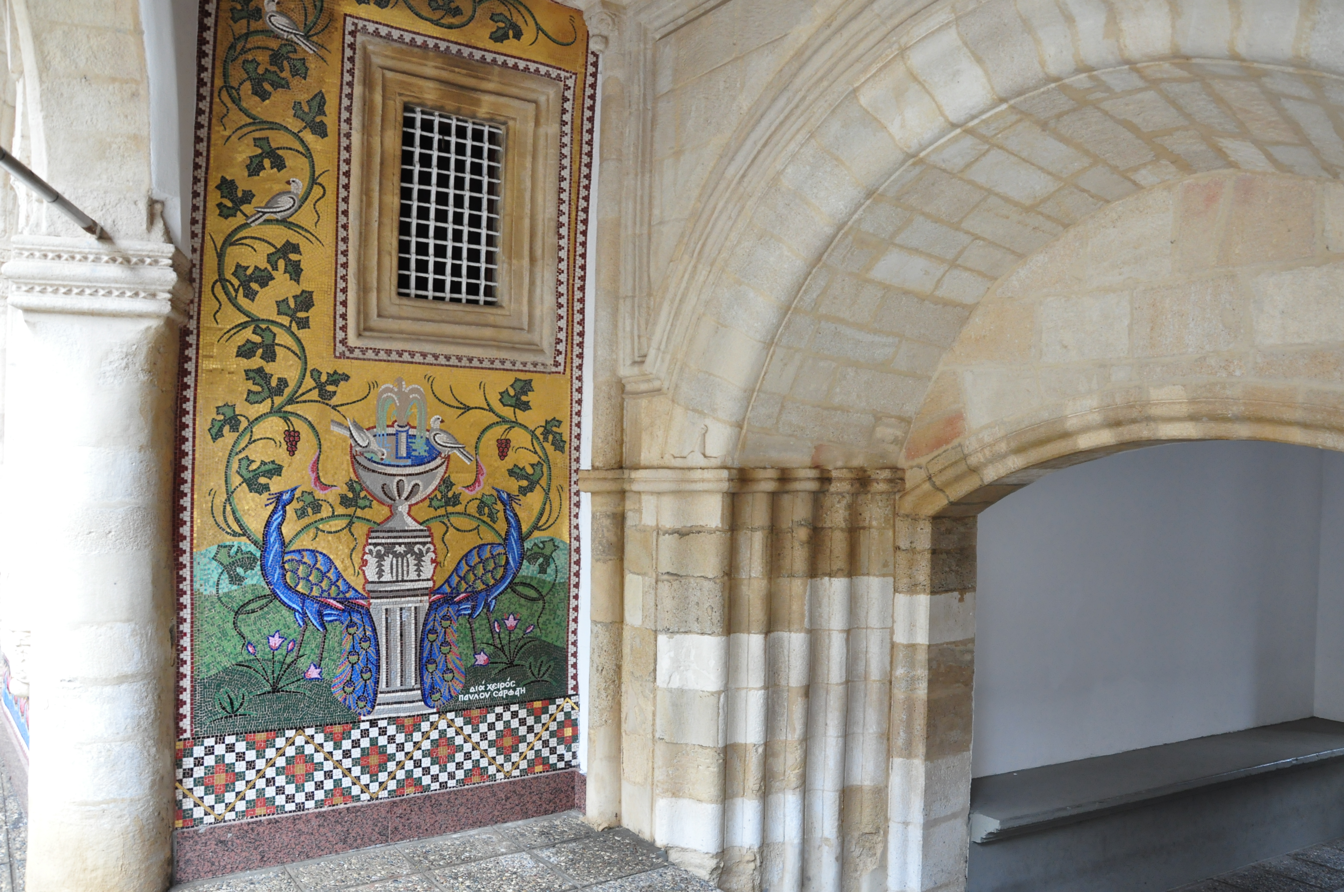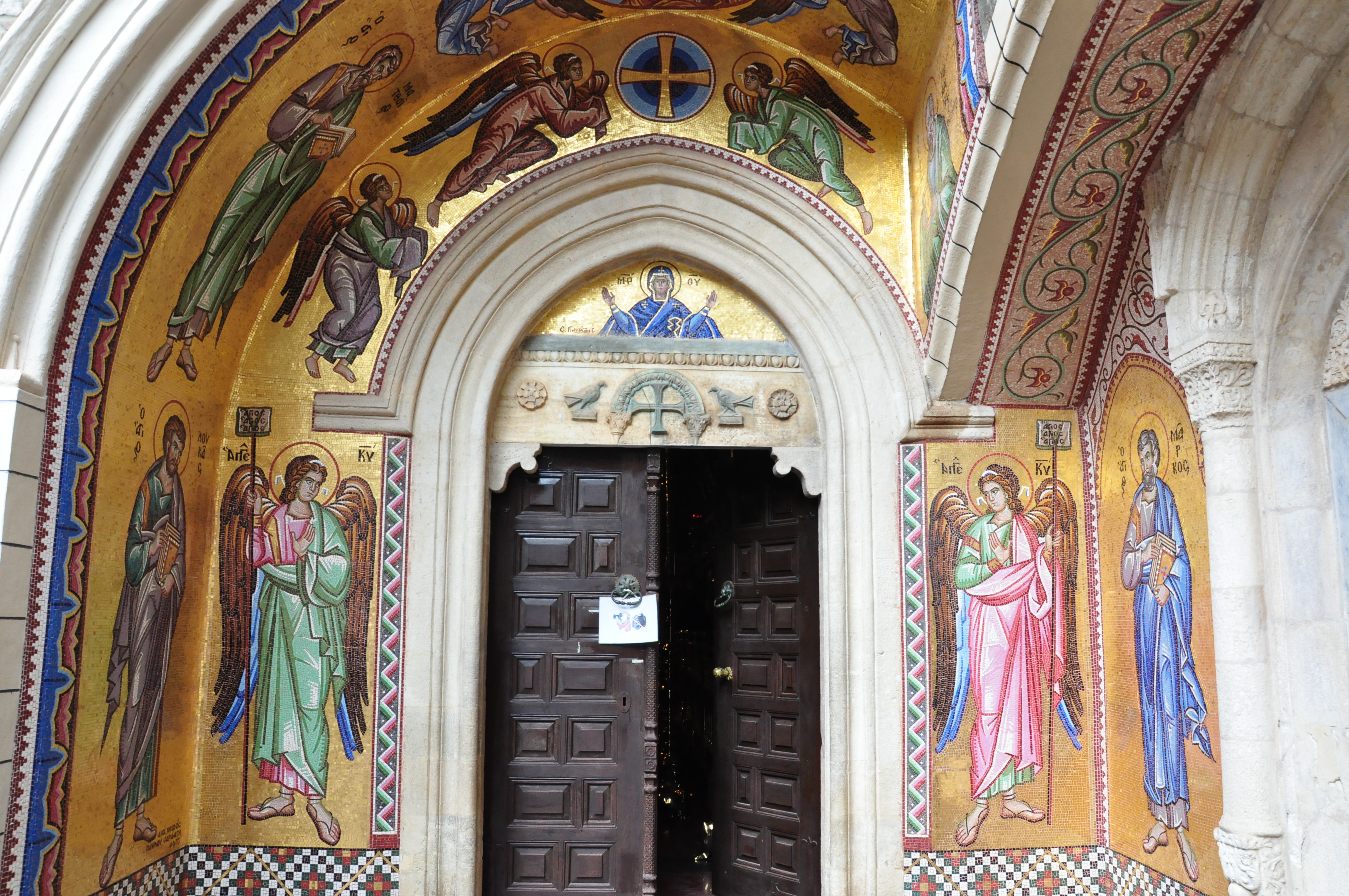 Монастырь настоящий, древней постройки с огромными мозаичными иконами.