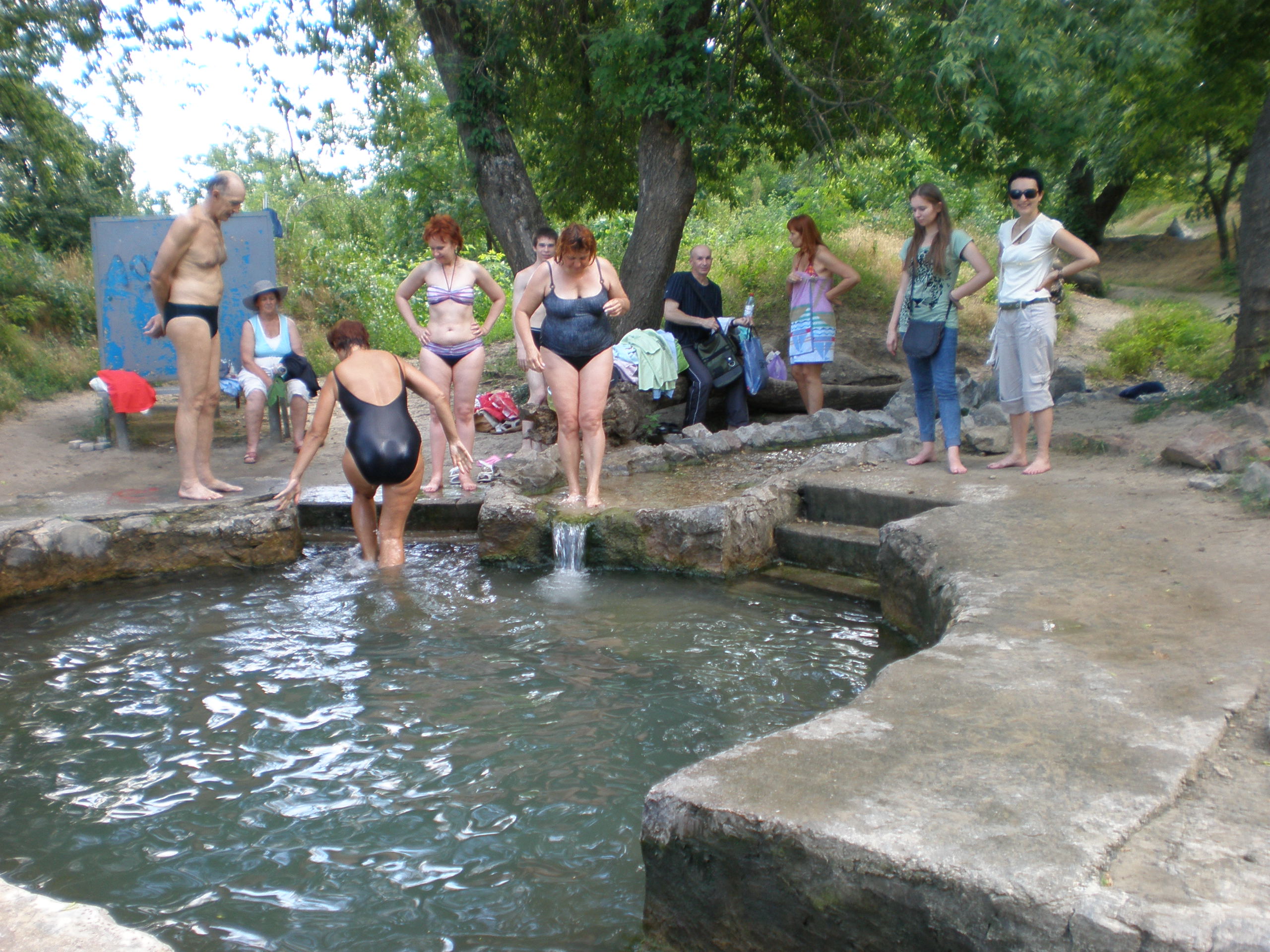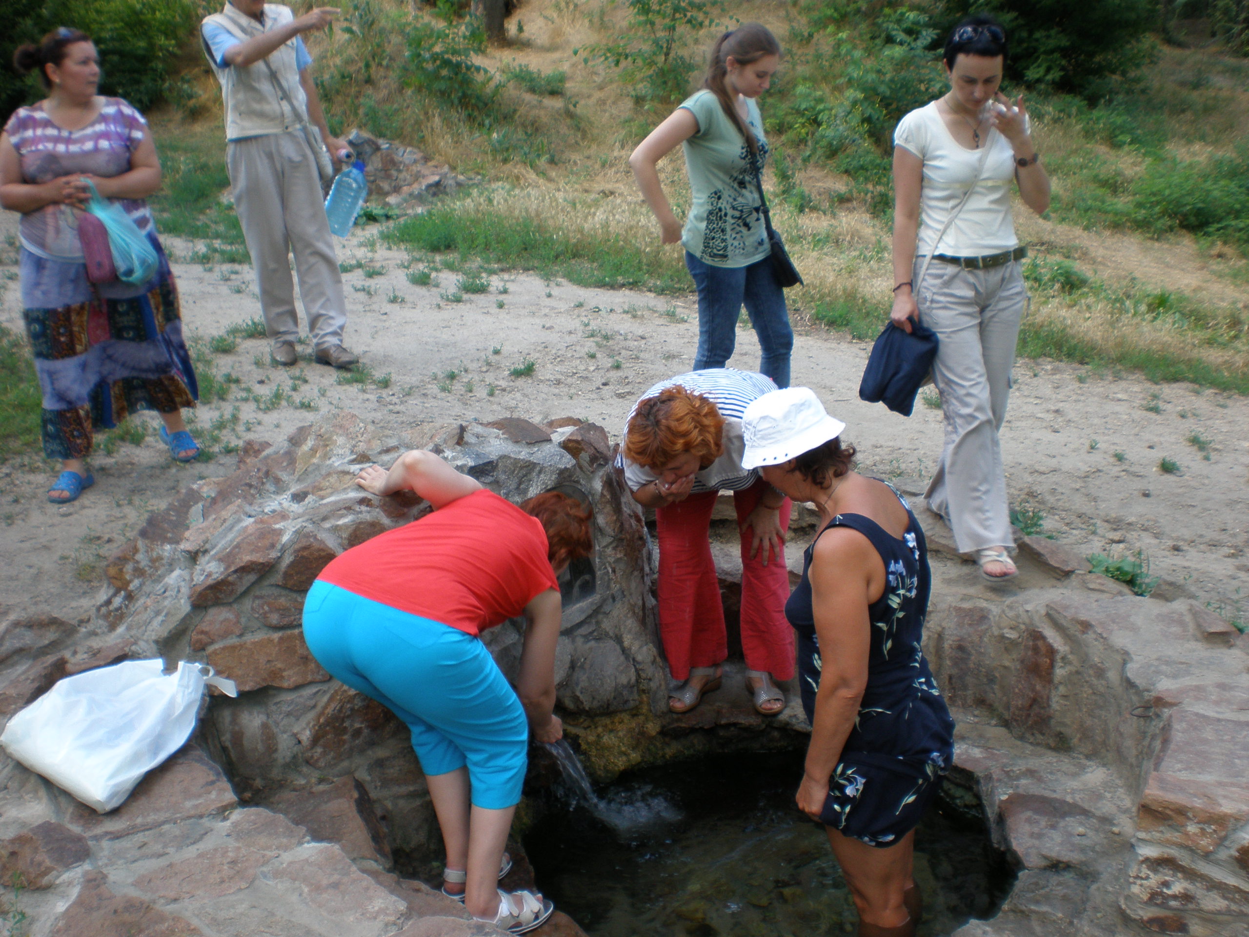 Искупались в купели. Я себя уговорила, что вода несет качества "мертвой" воды, с удалением лишнего и поэтому надо окунуться. Вода прохладная и после ныряния, моя голова, гудящая в начале поездки, снизила свое звучание.