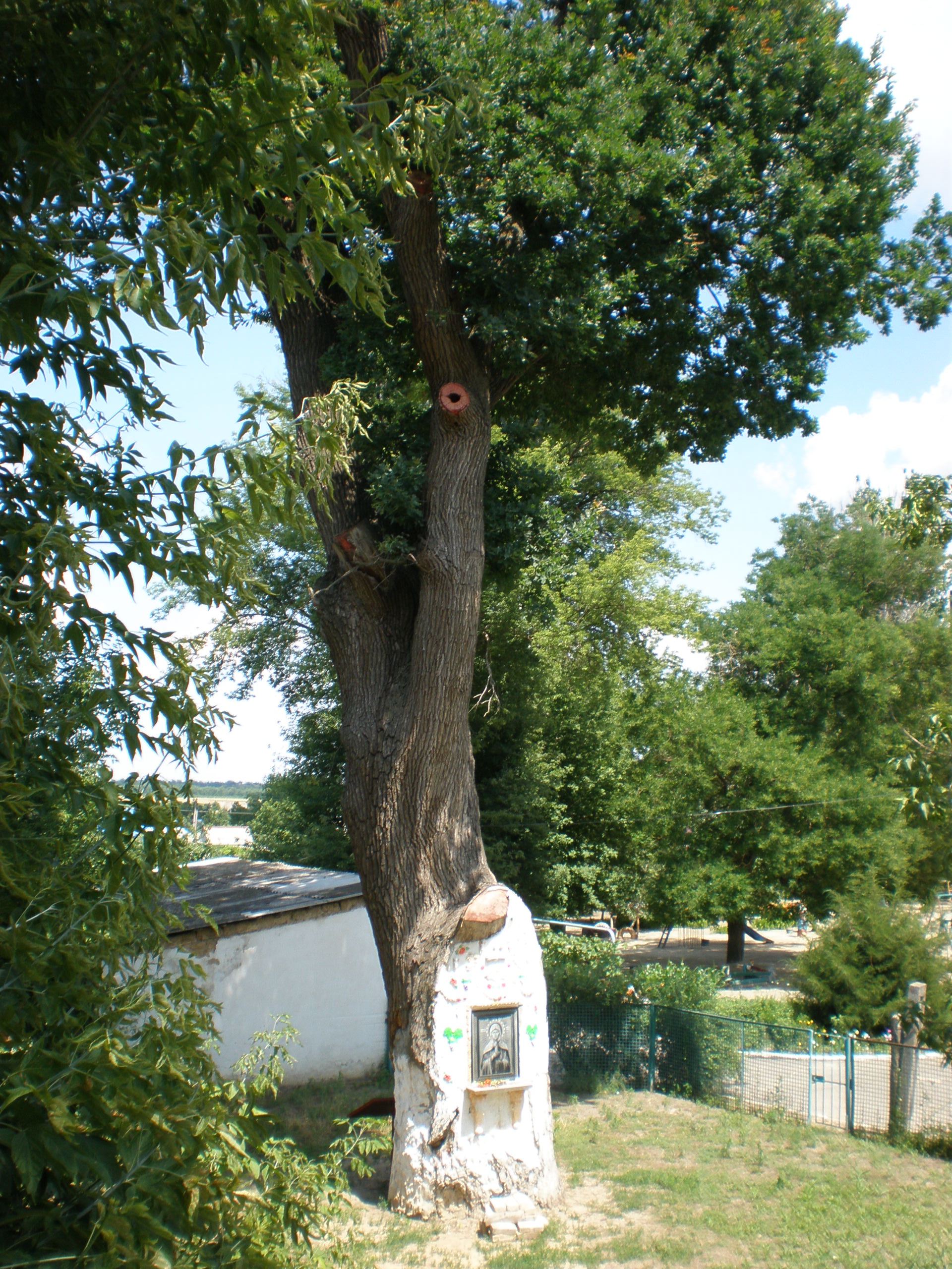 Через дуб идет светлый канал наверх к миру святых. На патронаж которых, по-видимому рассчитан, рядом стоящий детский дом.