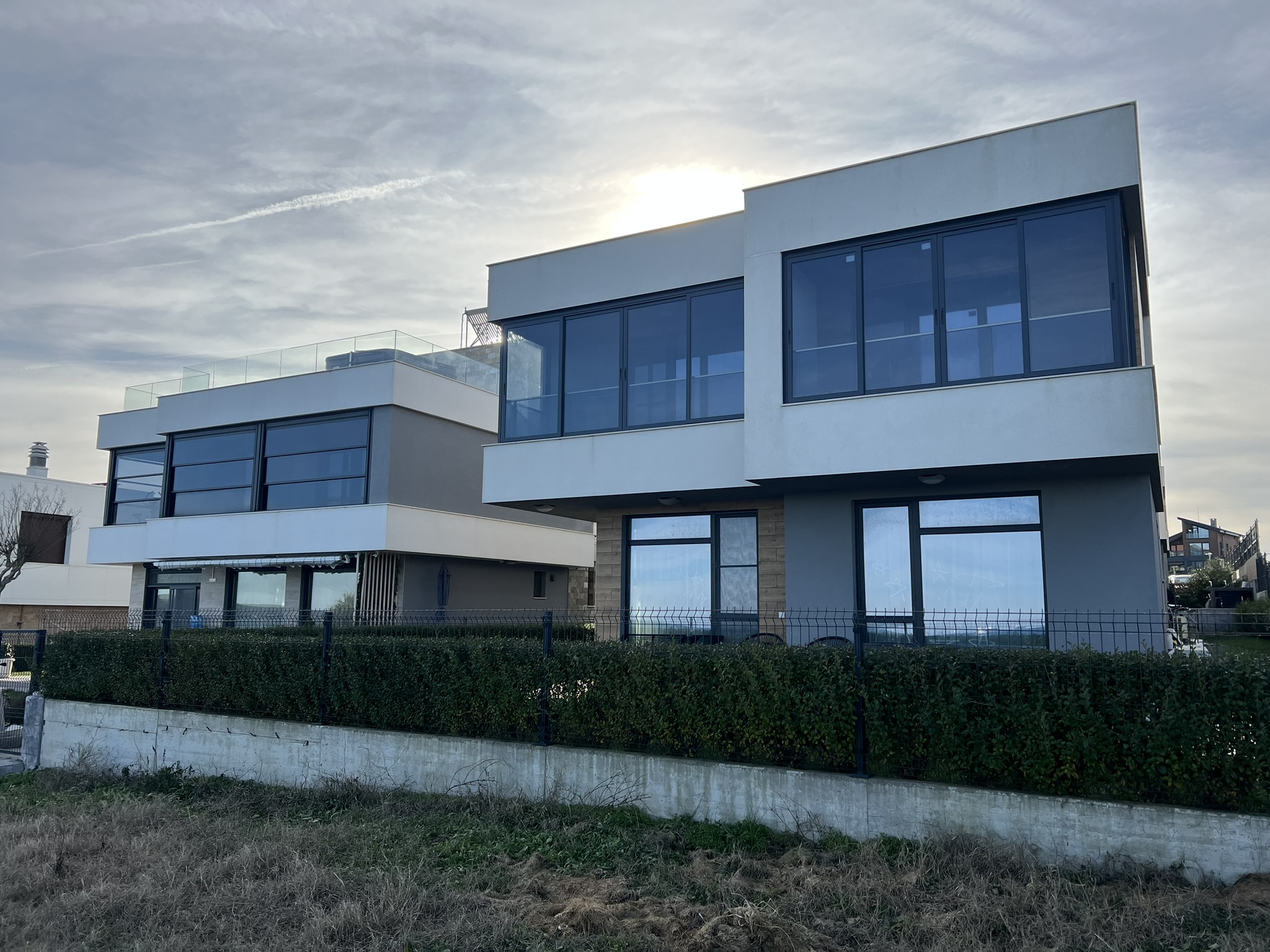 мимо новых жилых комплексов для отдыха уже построенных, манящих стеклянными окнами-стенами с видом на море