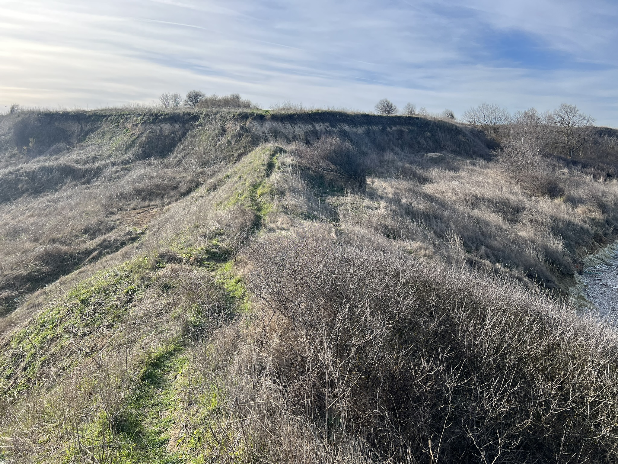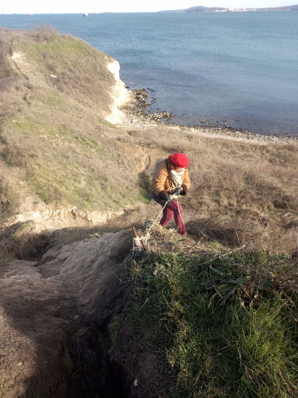 Ноги скользят от грязи, налипшей на обуви и от мокрой травы. С двух сторон высокий обрыв и внизу море.