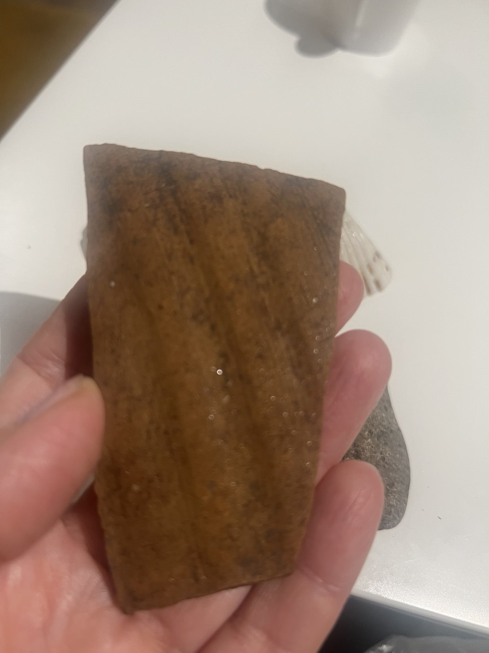 Я подняла кусок глиняного черепка. Дома я его отмыла и увидела на нем полоски, как от кувшина.