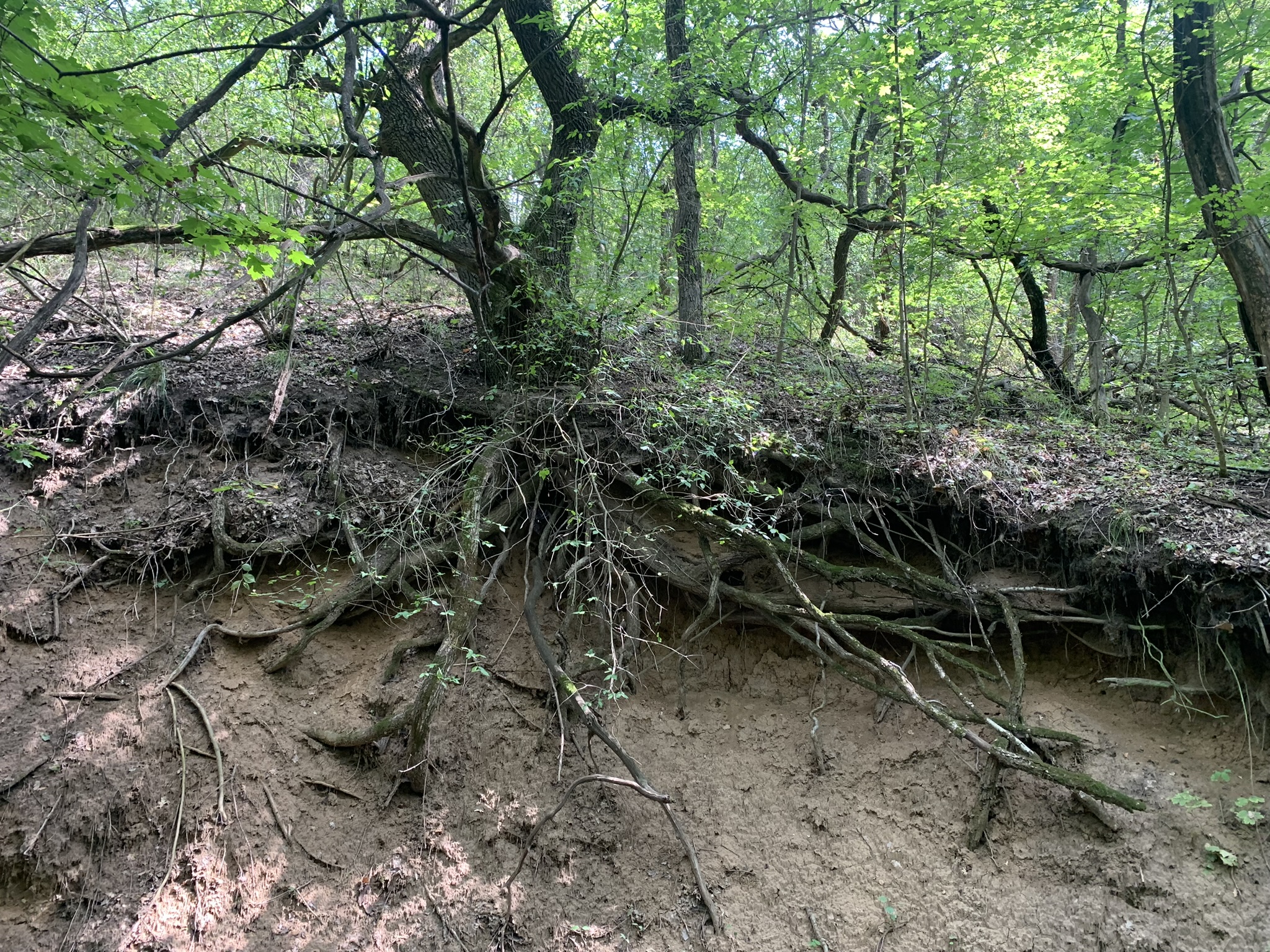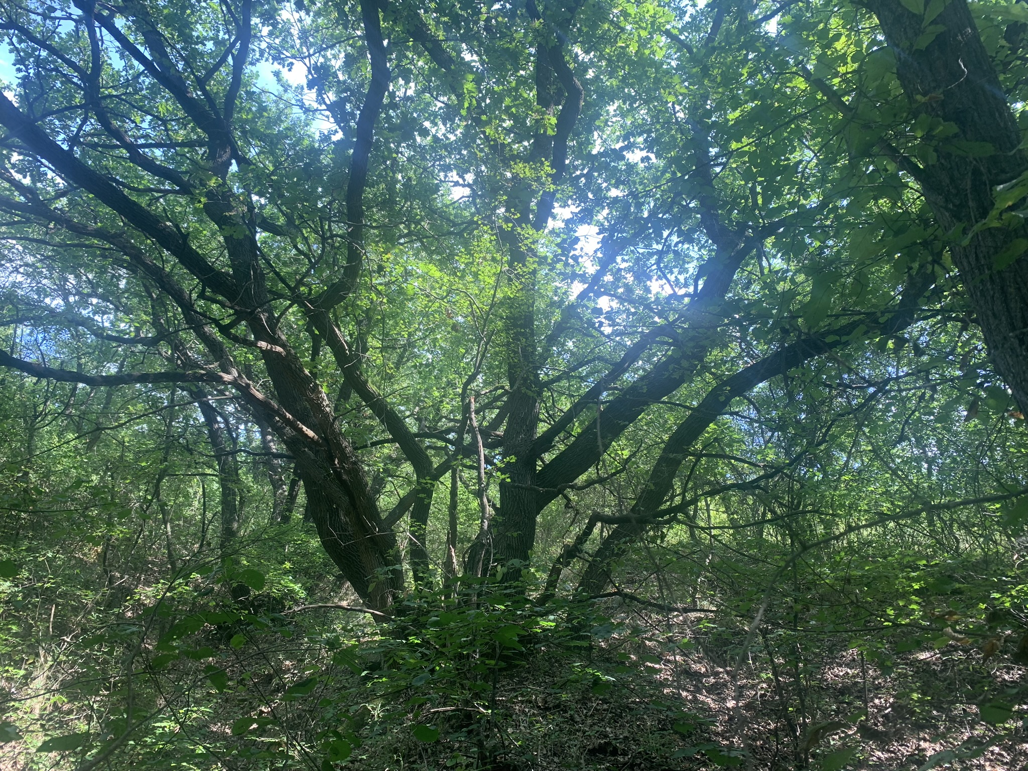 Дубів довкола багато. Дуби ростуть по кілька товстих стволів з одного місця.