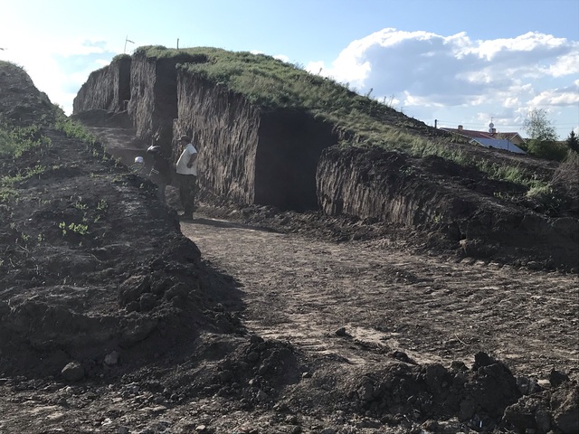 Здесь, в центре места, служившего последним прибежищем для людей 5000 лет назад я испытываю странные чувства - прикосновения к истории планеты и грусть от того, что теряется курган. Курган разрезан опытными археологами, как пирог на куски. Нам повезло встретиться и услышать лучших археологов Днепровской археологической экспедиции - Дмитрия Тесленко и Ярослава. Ярослав провел для нас великолепную экскурсию по кургану. Археологи стараются и очень тщательно исследуют курган.