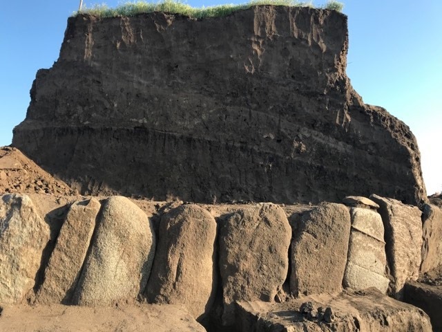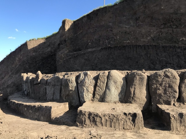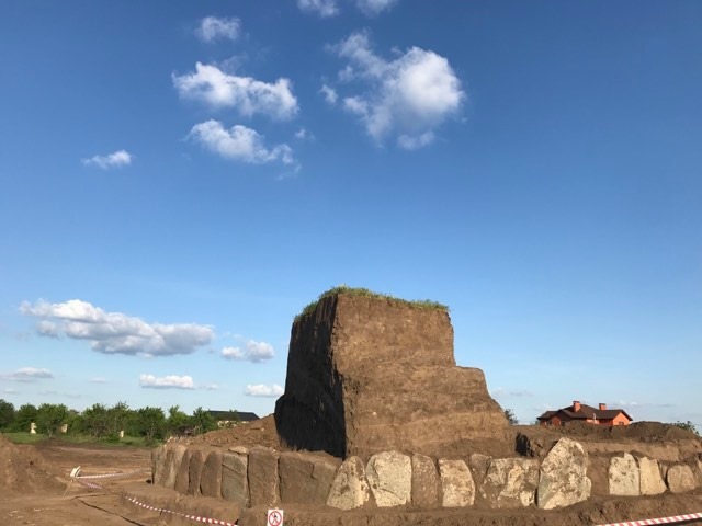 На срезе кургана видны временные отметки. Как рассказали археологи, еще 2 недели будут исследовать курган.