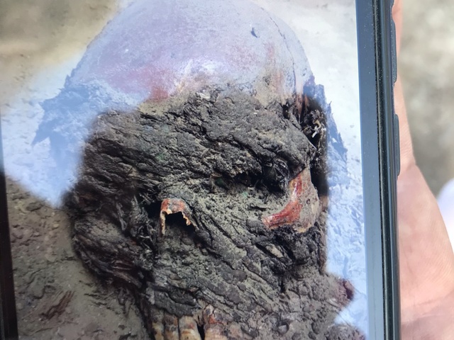 Археологи показали нам захоронения. Почти на всех есть раскраска черепа ярко-красной охрой. Видимо, древние жители этой земли обладали умениями мумификации. Сохранились даже части внутри позвоночника.