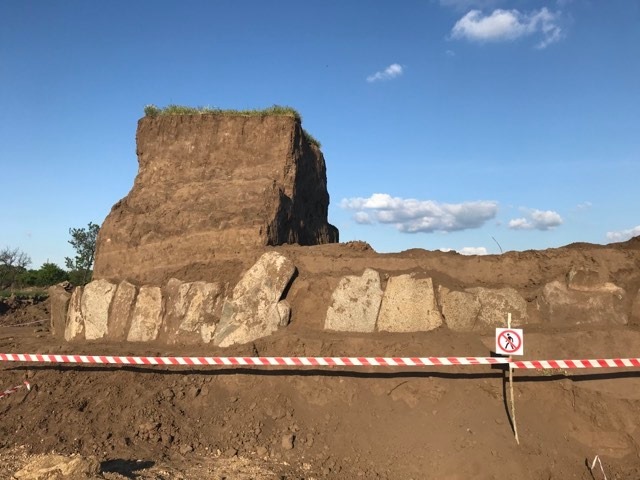 Мы не знаем кто жил 5000 лет назад на этой земле. Мы можем узнать, кто здесь жил и чем занимался лишь исследовав захоронения в кургане. Курган был основан в медно-каменном веке. Его основу составляет каменный кромлех. Огромные каменные глыбы были доставлены сюда с берегов реки Самары, протекающей в 600 метрах отсюда. Размеры каменного кромлеха впечатляют. Я еще не видела таких больших кромлехов в диаметре и высоте. Археологи утверждают, что камни через несколько сот лет, после того, как их установили, выступали на метр из земли и их вытаскивали для своих нужд представители ямной культуры, пришедшие на эти земли позже.