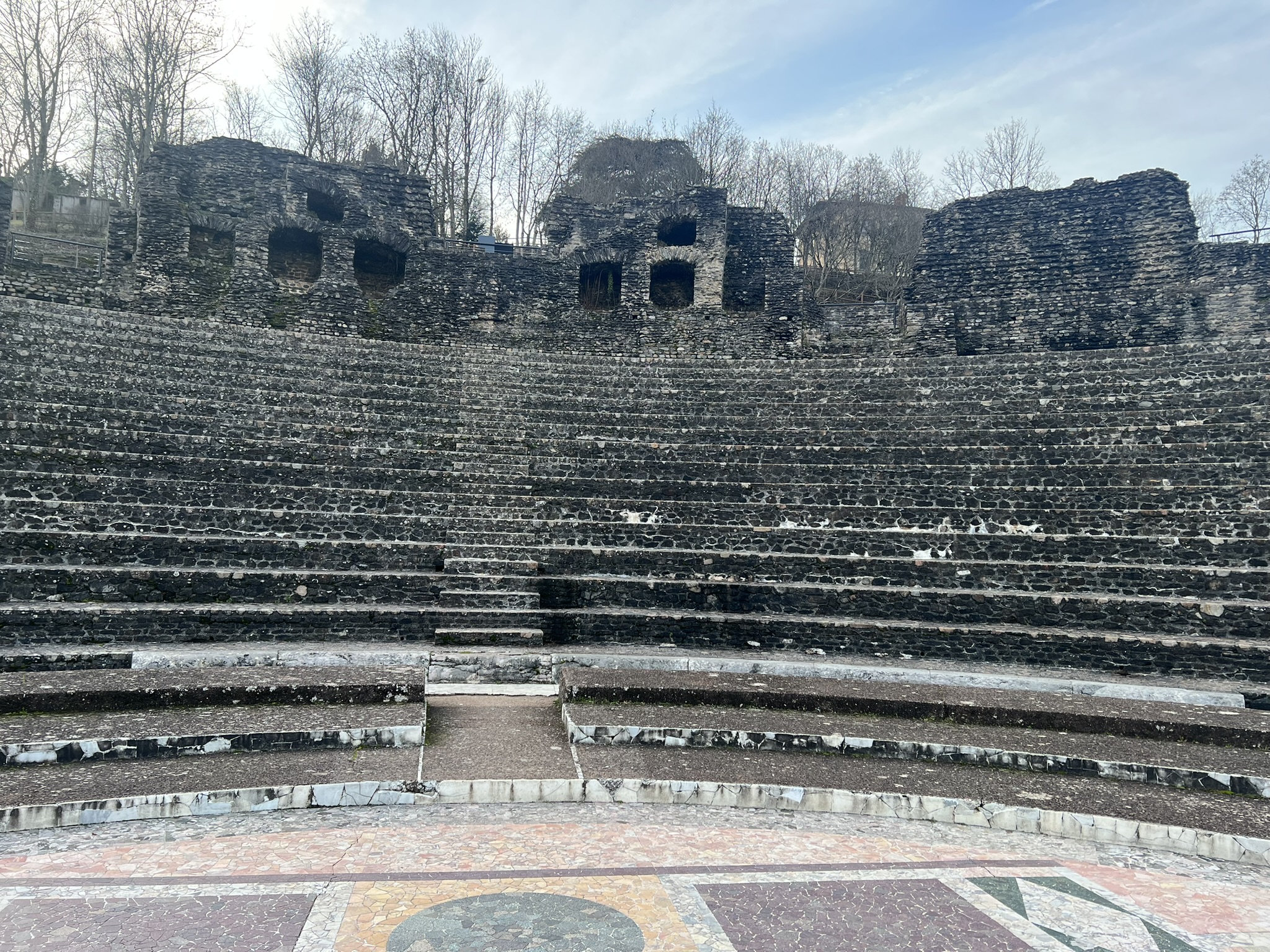 Античный театр, находящийся рядом, представляет из себя сооружение диаметром 108 м.