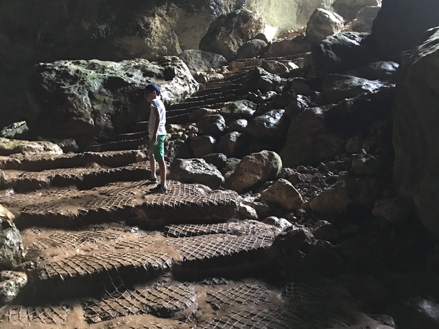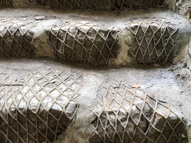Повсюду капает вода, делая ступени скользкими. Еще более скользкими их делает глина и земля снизу, наносимая ногами путешественников. Чем ниже спуск, тем больше глины и воды на ступенях. В самом низу дорога уже без сеточки, темно и скользко.