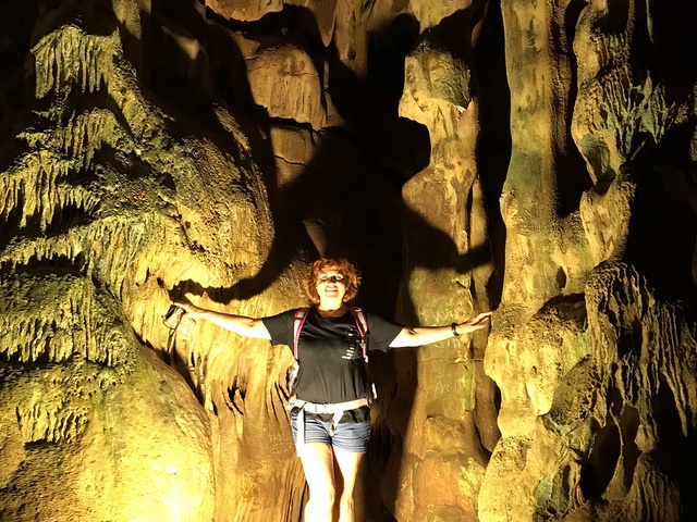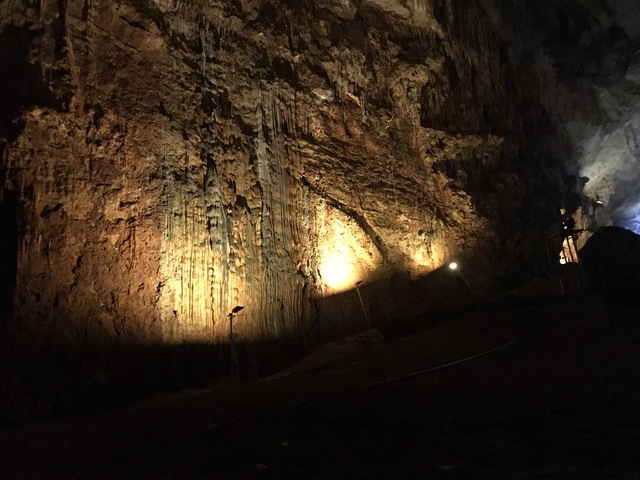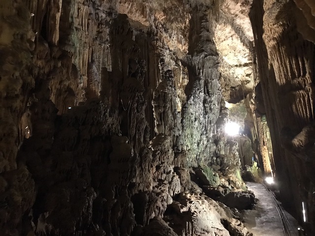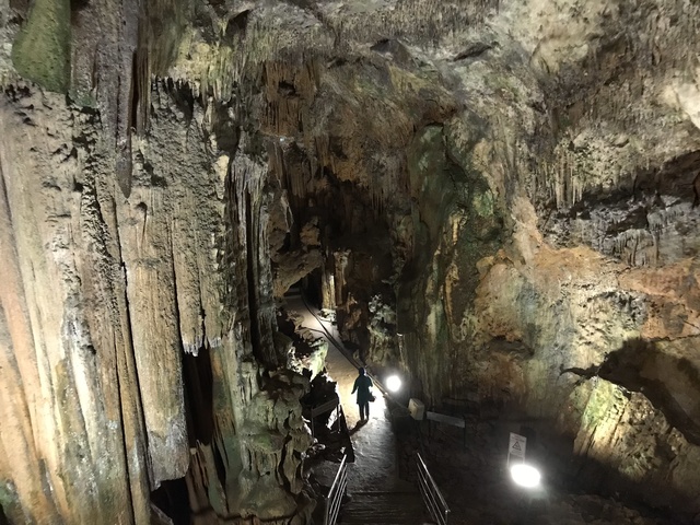В кафе в кассе оплачивается вход - 7 лир, и там же находится винтовая металлическая лестница вниз. В пещере есть несколько залов со свисающими вниз и растущими вверх каменными образованиями ( знаю они имеют разные научные названия, но, чтобы не запутаться не пишу их).