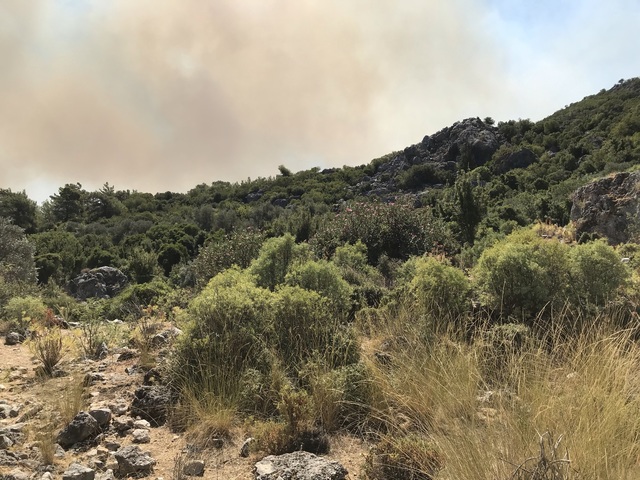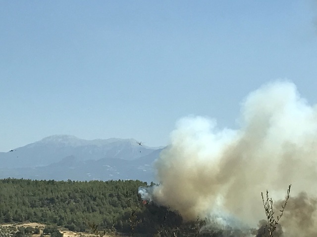 Рядом с селением  горела гора. Жители деревни вышли на дорогу. Женщина гнала в горы стадо овец, люди подвозили воду в легковых автомобилях, кто-то возил воду на тракторе. Когда мы ехали в Пинару, как я теперь понимаю, пожар был маленький в виде струек дыма поднимающихся от леса на вершине горы.
