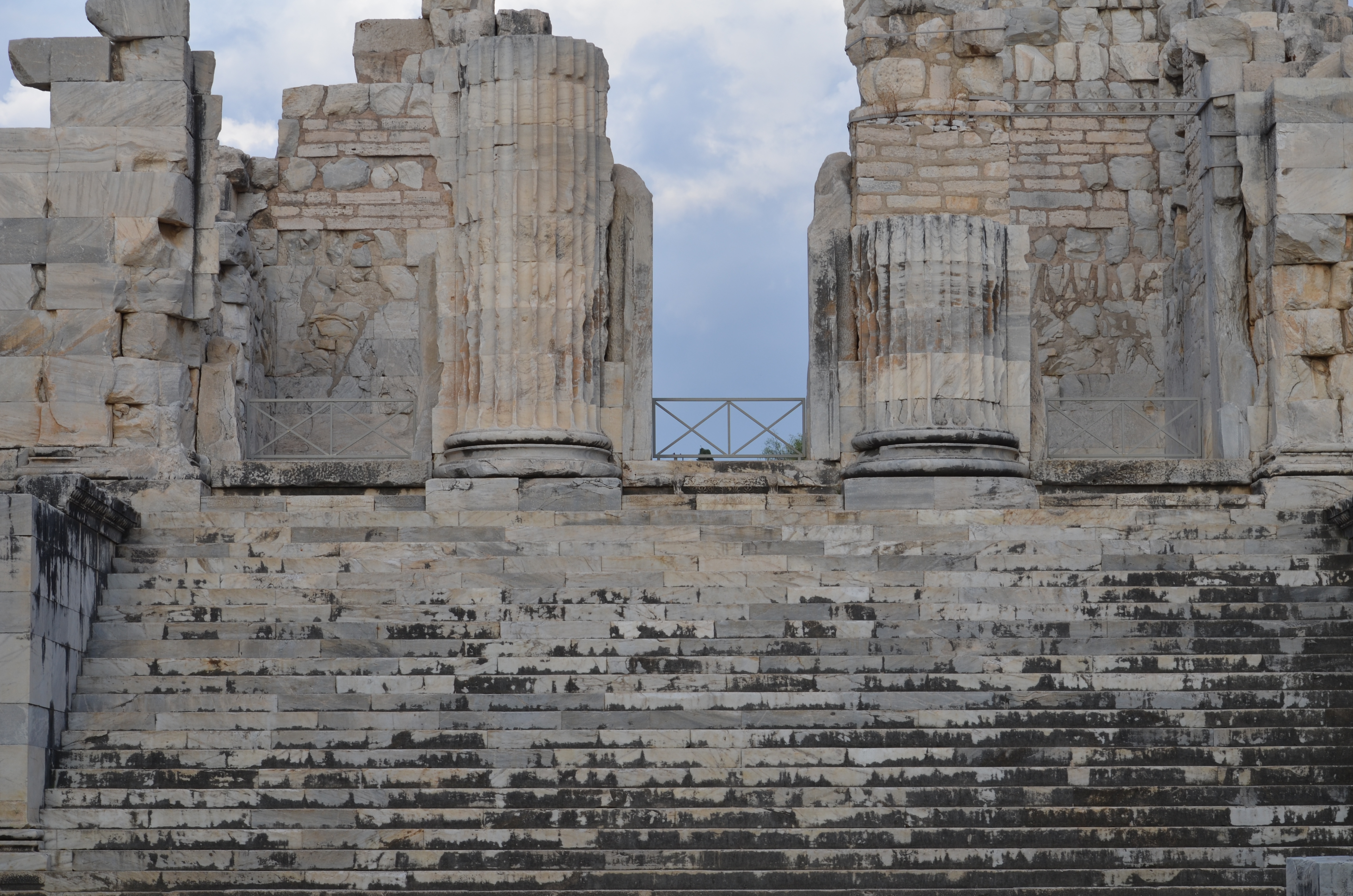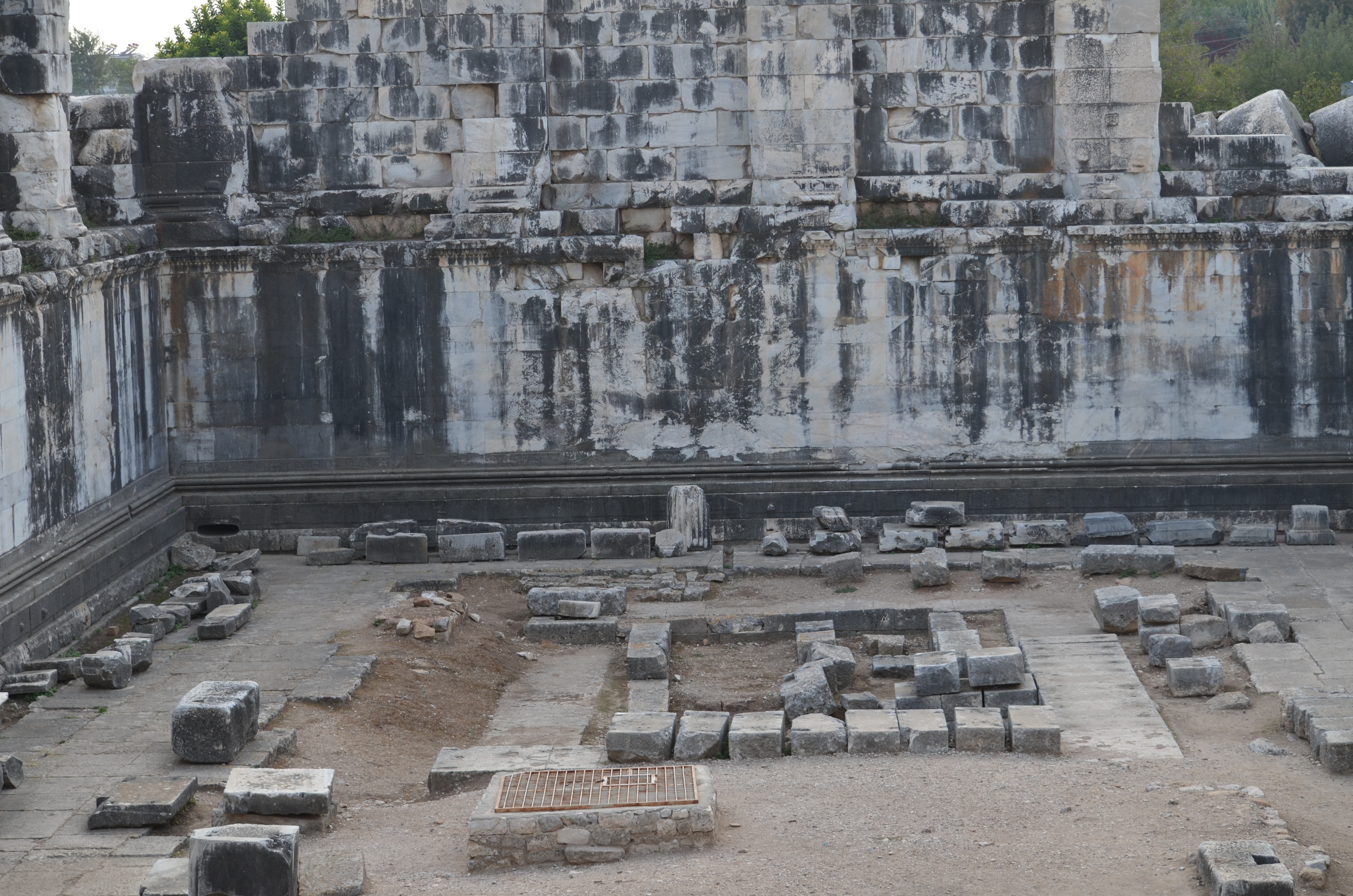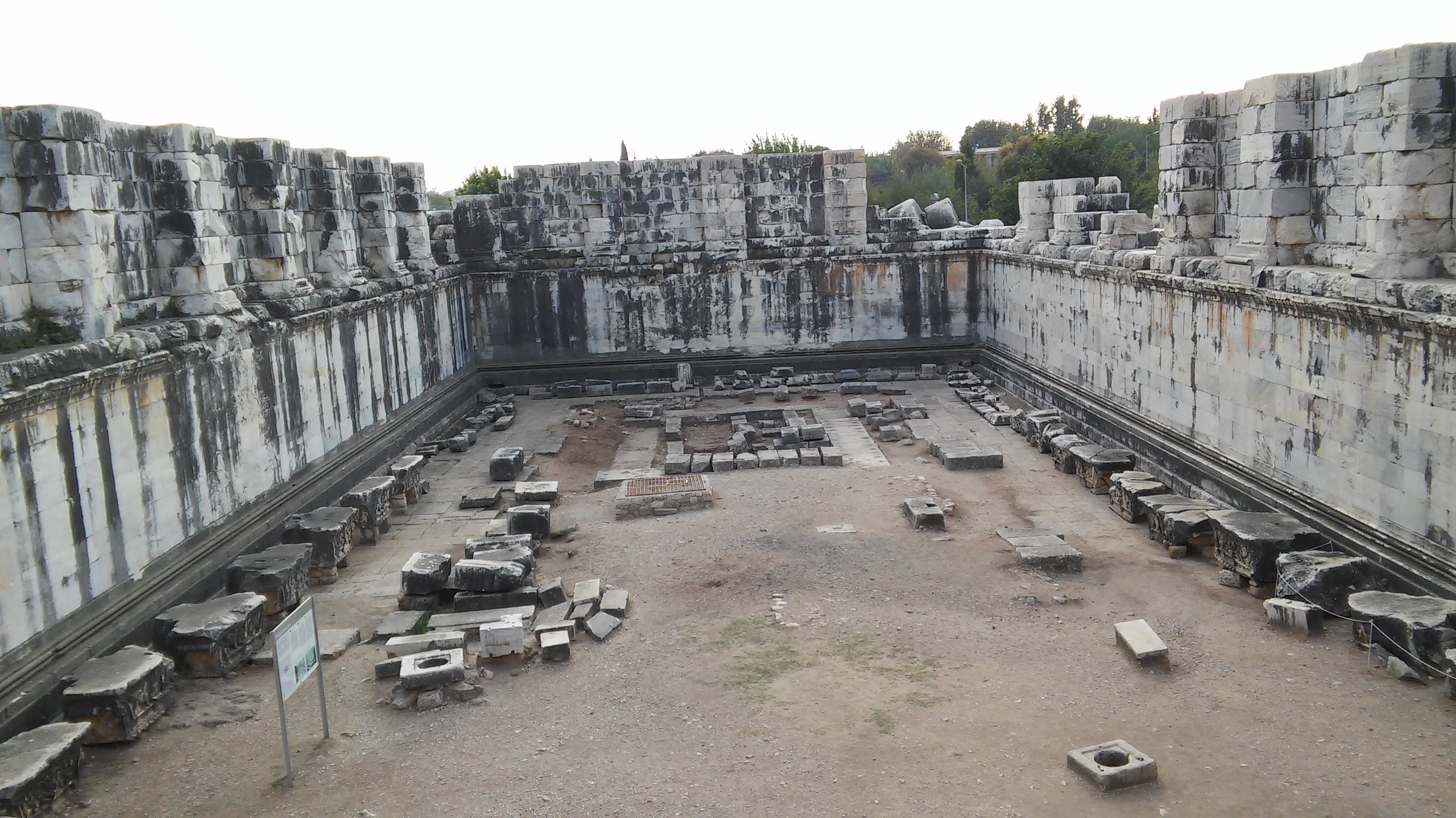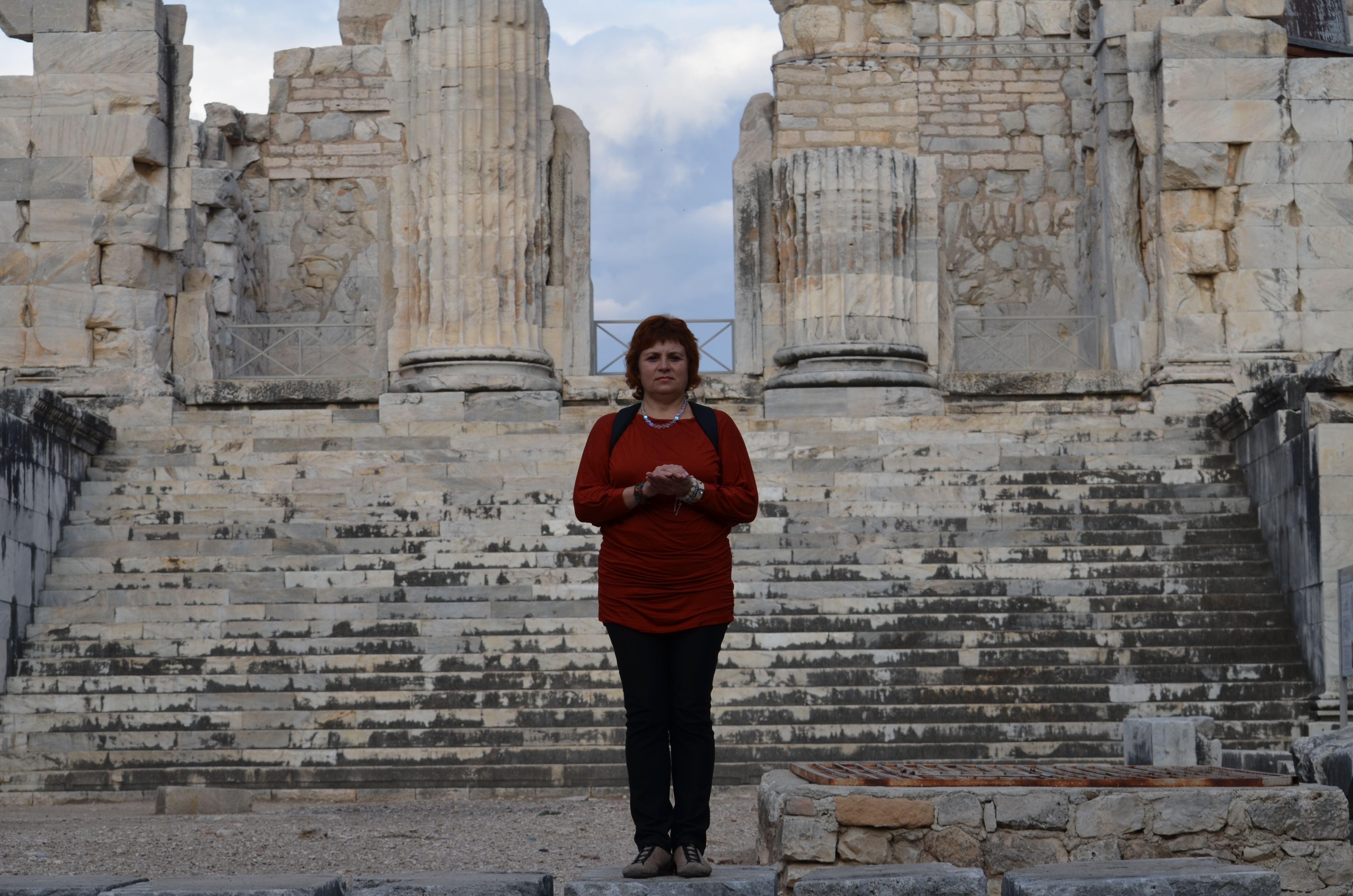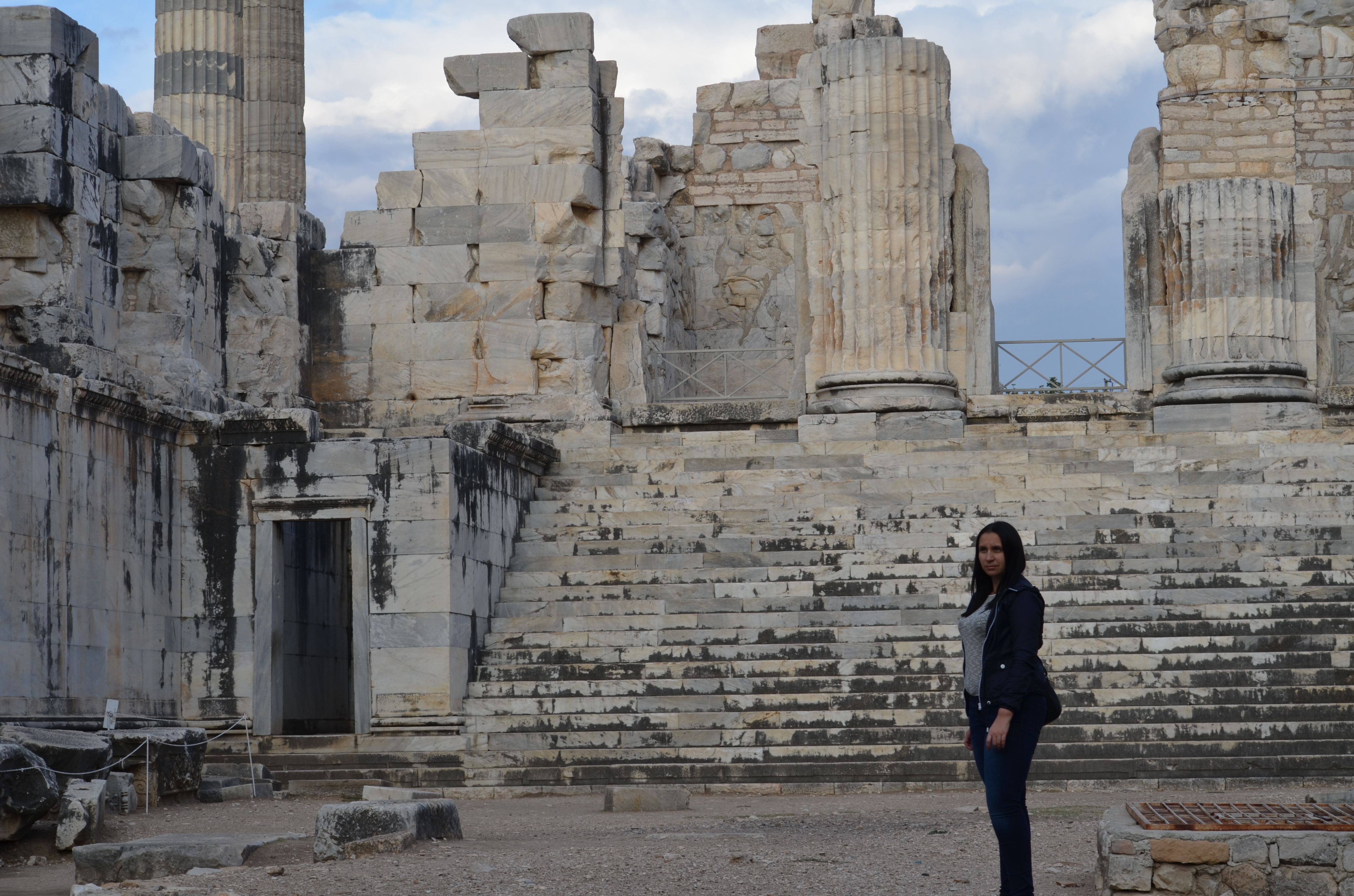 Мы поселились в  чистеньком, как новый номер в отеле, городке Алтинкум  на берегу моря. Но, городок мне не зашел, как говорится. Через несколько минут на городском транспорте маршрутке, по турецки долмуше, мы добрались до развалин храма Аполлона. Но, по свидетельству историков, храм так и не был никогда достроен до конца. Его строили последние 7 столетий. Что помешало завершить строительство? То ли огромные размеры храма, то ли важно было само состояние созидания, творчества, теперь уже неизвестно.