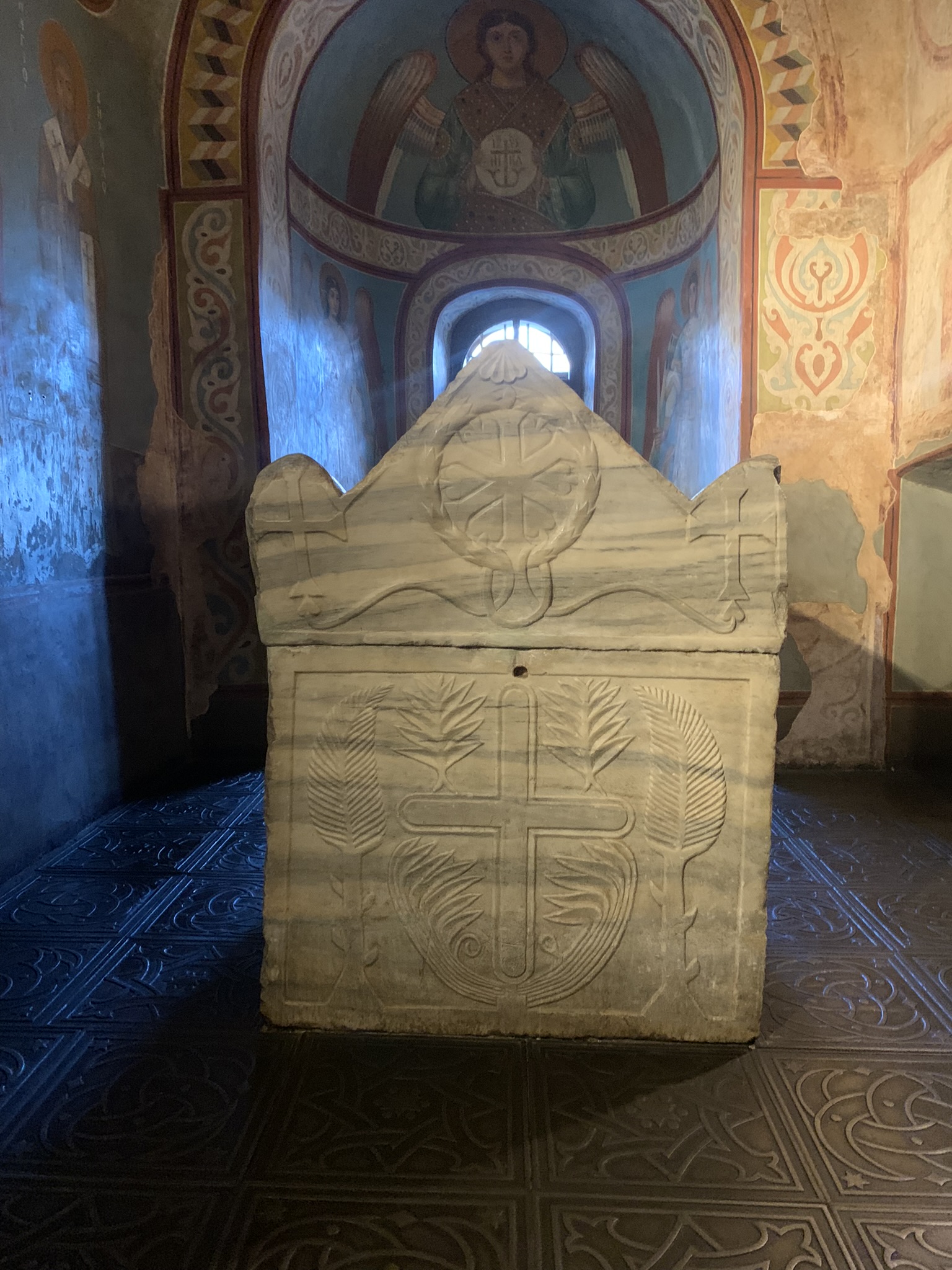 При входе в Софию Киевскую слева стоит саркофаг Ярослава Мудрого.