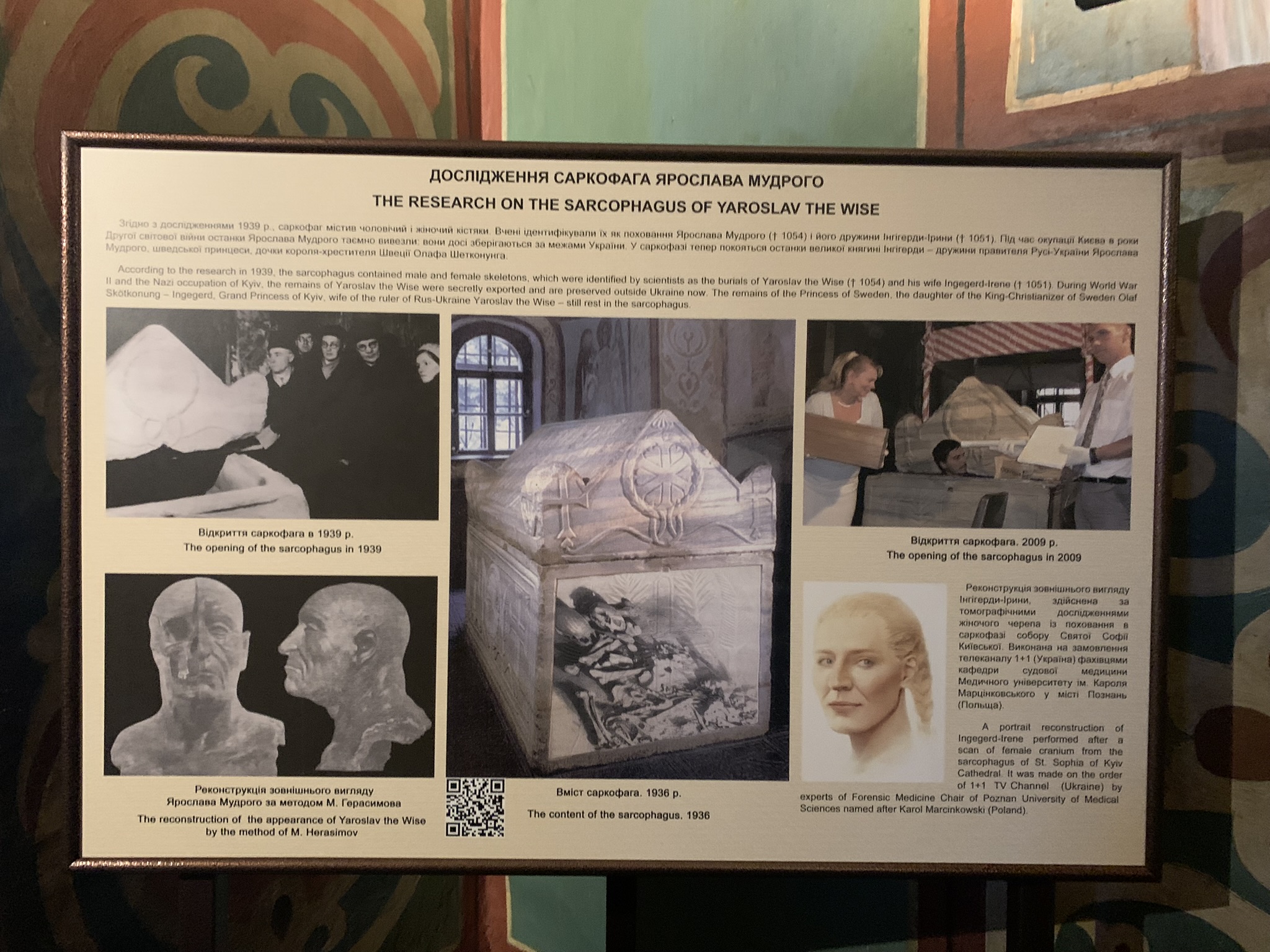 Але, в пояснювальній табличці написано, що він тут знаходився раніше. Його розкрили в 1939 році. Під час Другої Світової війни вміст вивезли. А повернули вже без Ярослава Мудрого. Я не знайшла, де зараз знаходяться його останки. Очевидно, вкрадені шукачами кісток та артефактів.