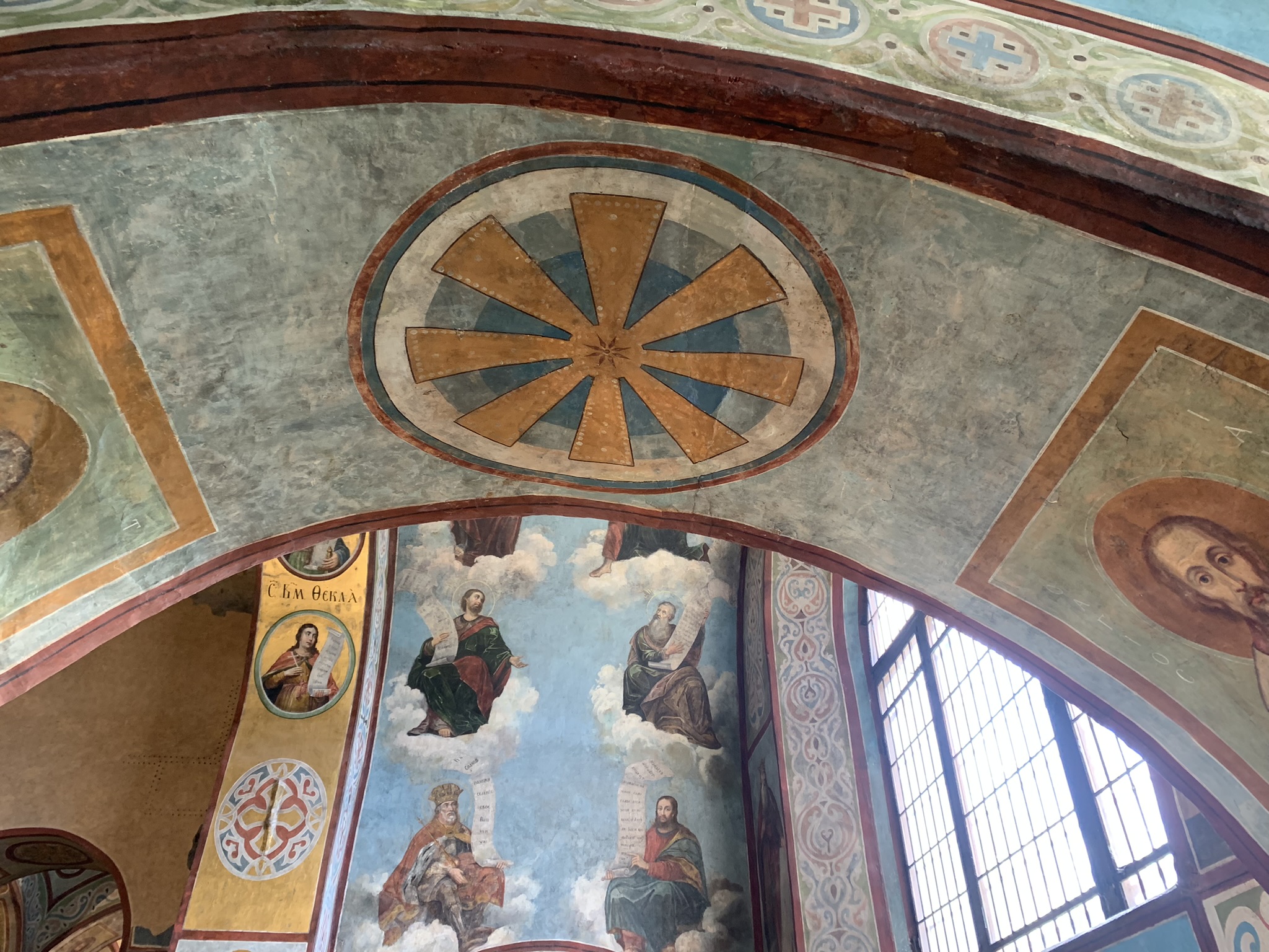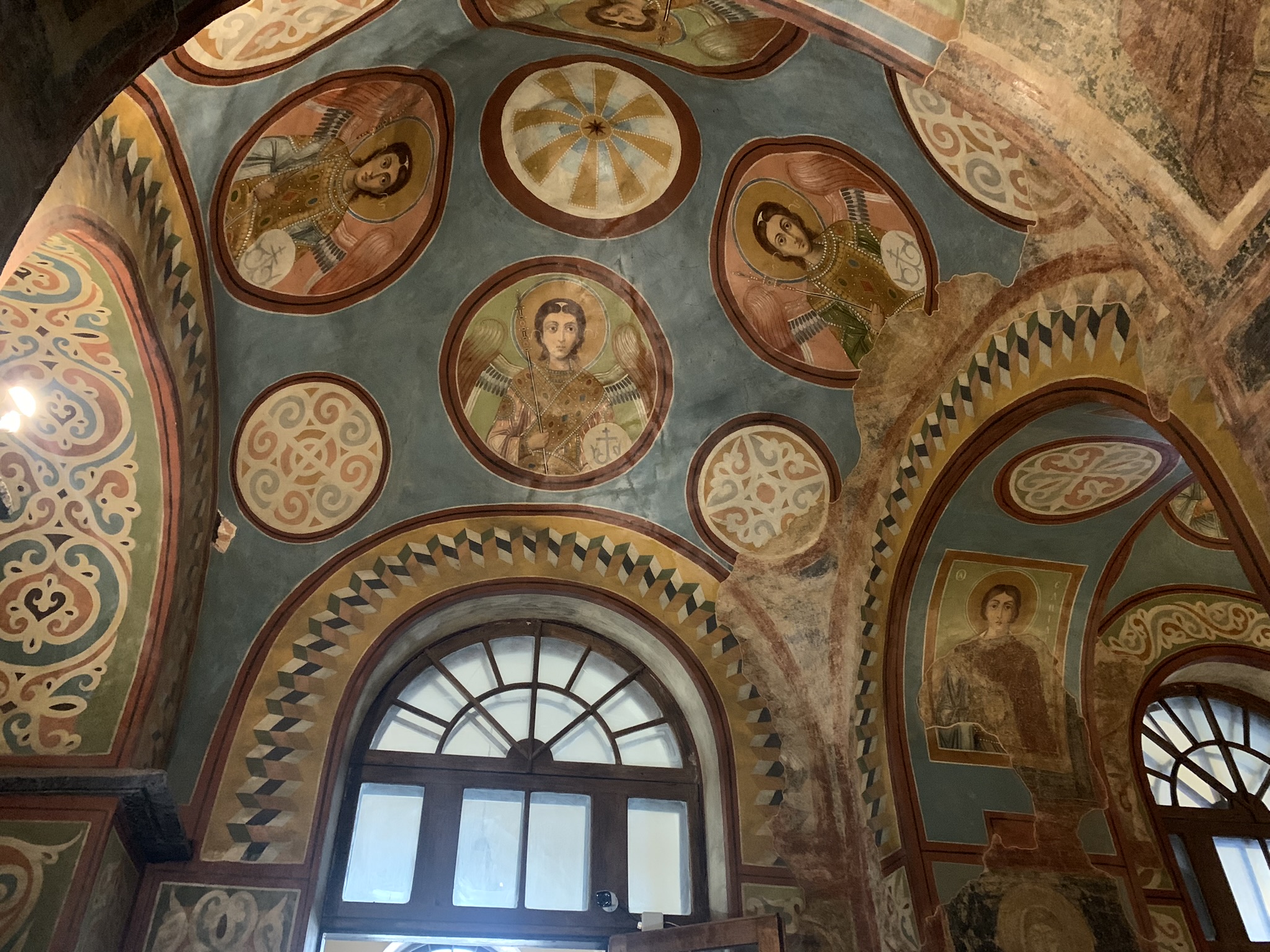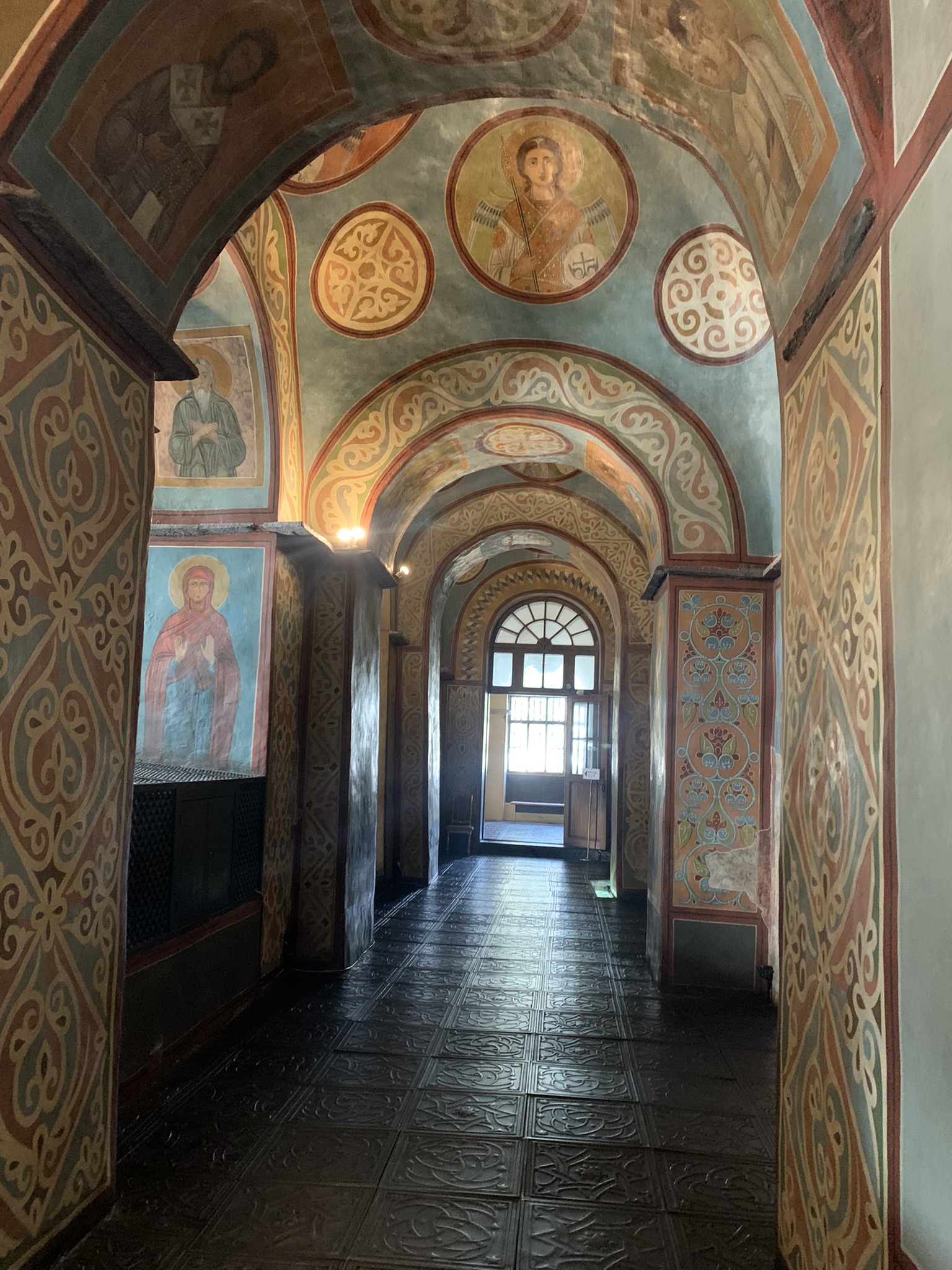 Все покрыто цветными орнаментами и изображениями святых, ангелов.