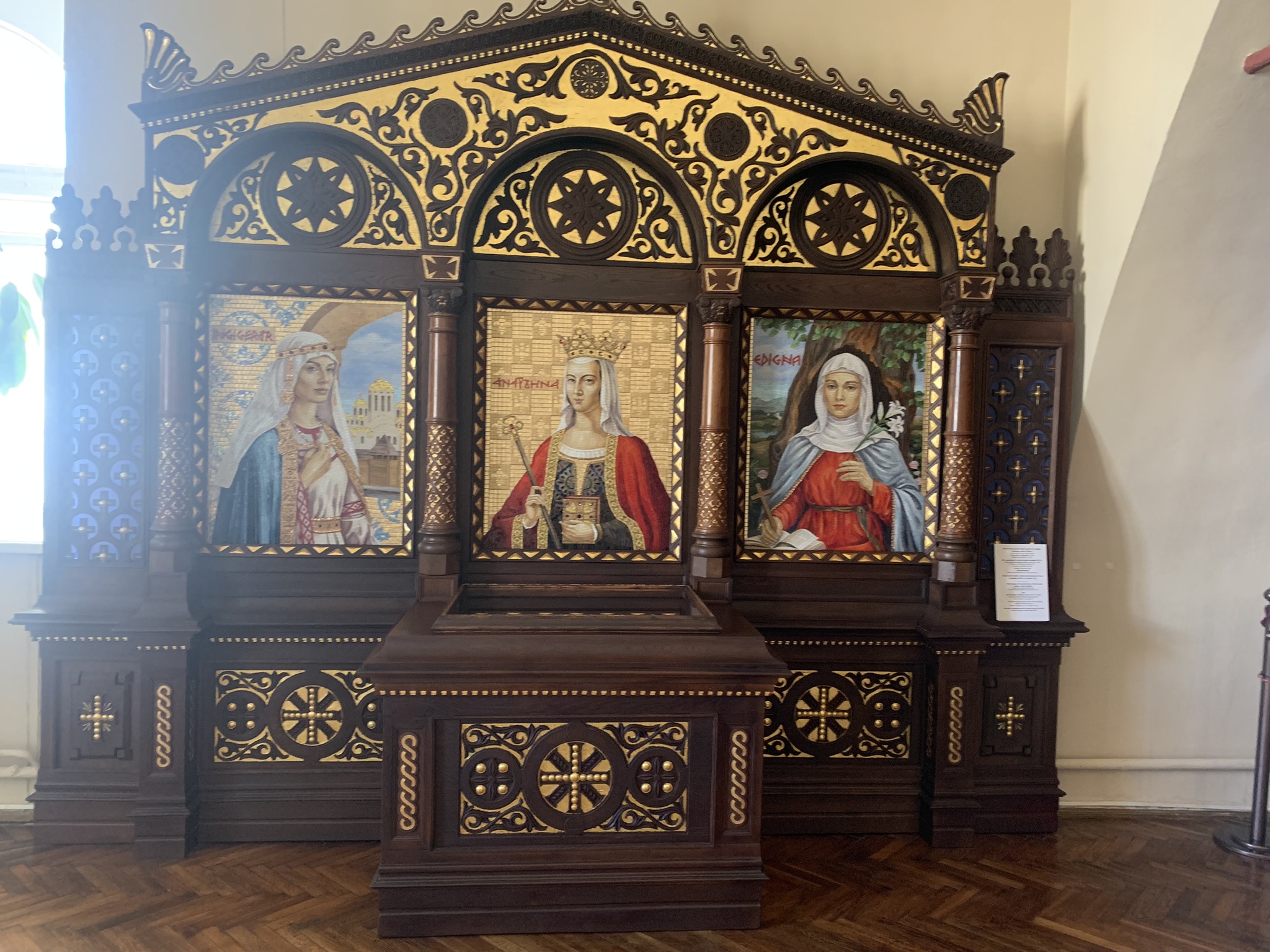 На втором этаже находится выставка фресок. Очень красиво оформлена. Лица и глаза, собранные из мелких стекол выглядят намного выразительнее нарисованных.