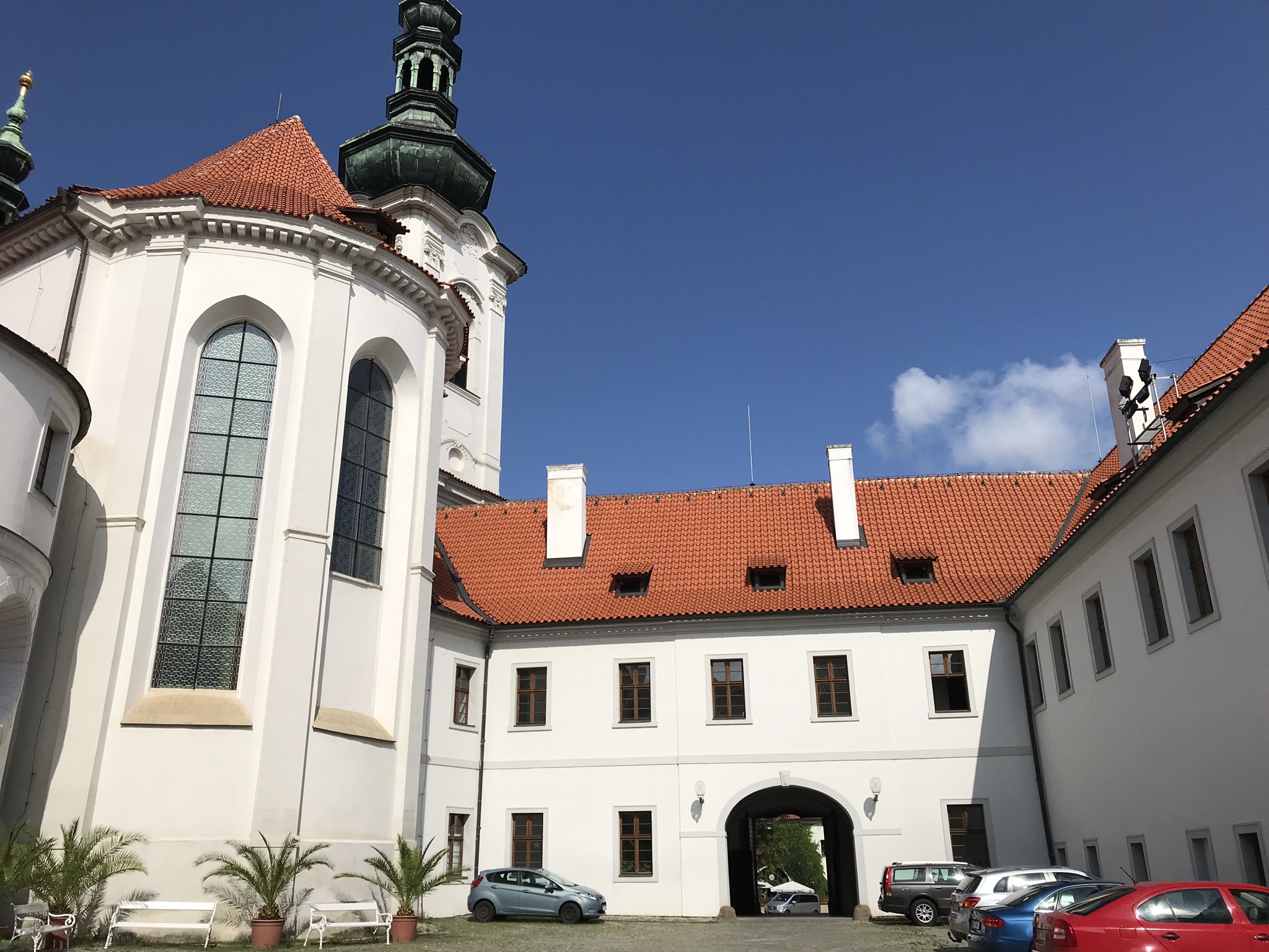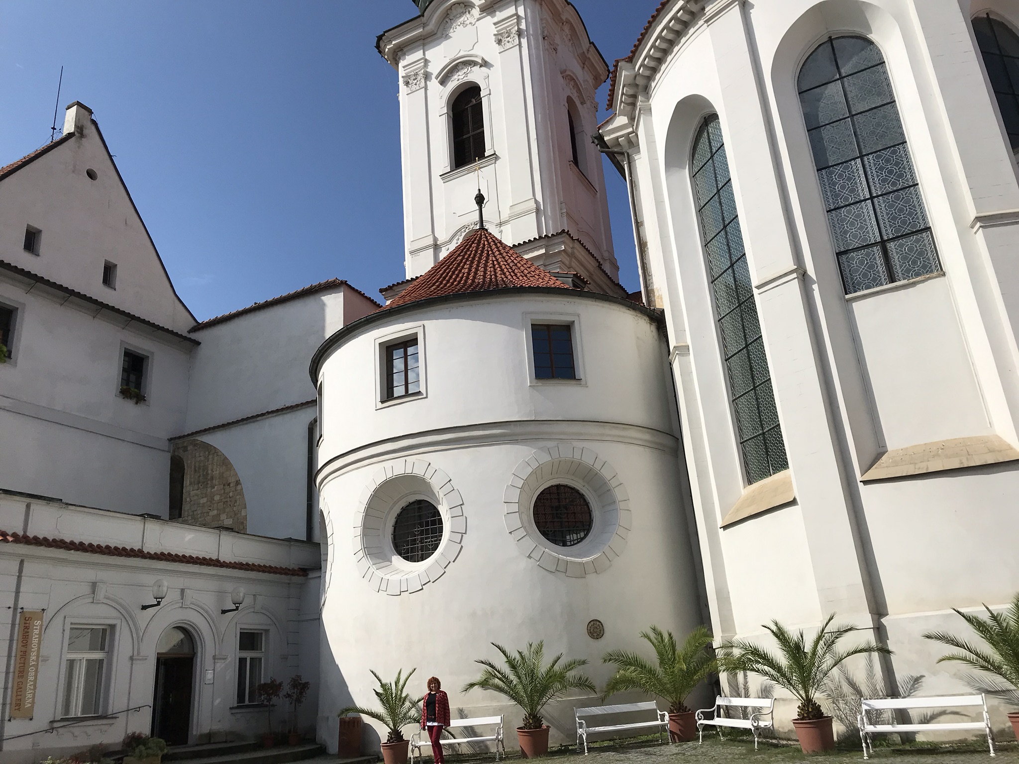 Страговский монастырь занимает большую территорию и включает в себя площадь , окруженную зданиями монастыря, колокольней.
