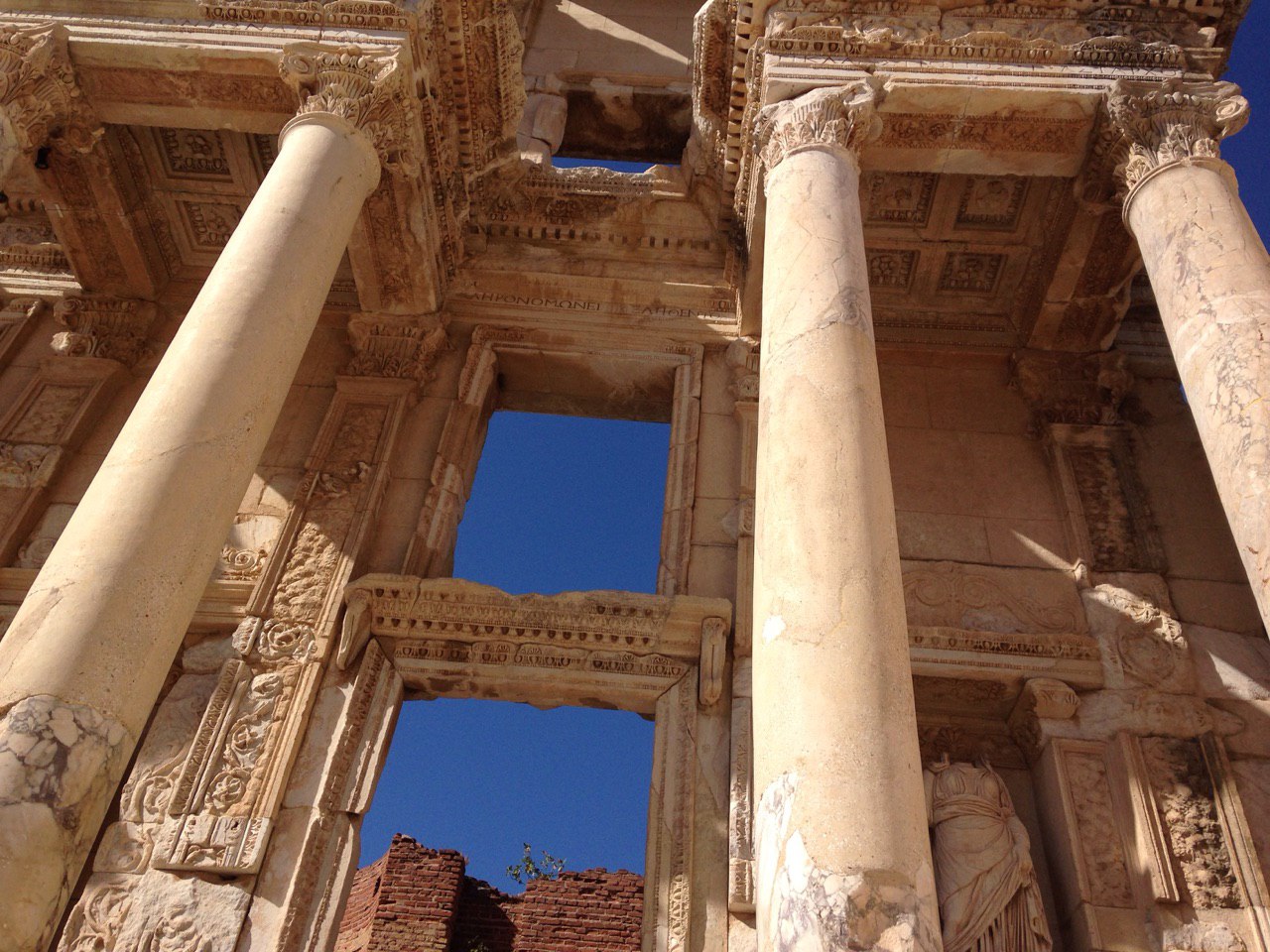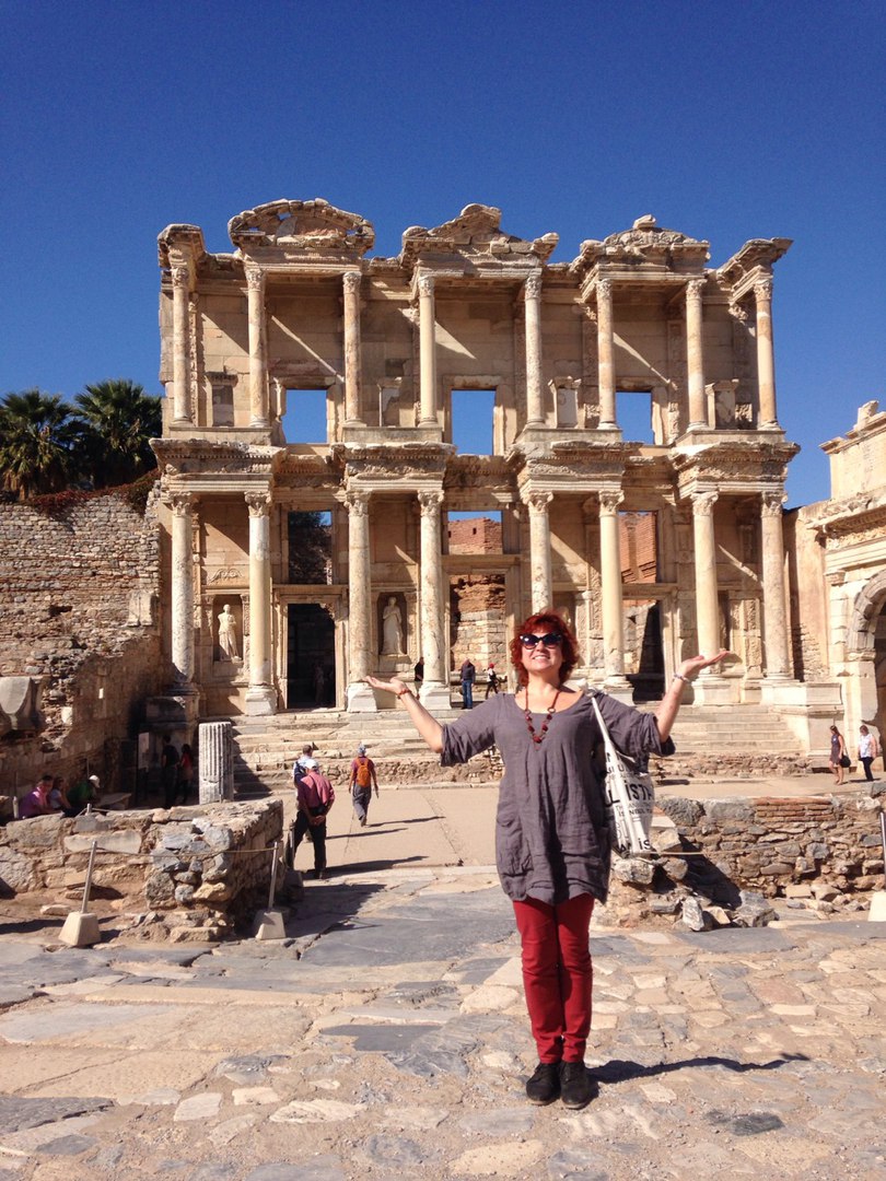 По плану должен быть Пергам. Я живу в отеле рядом со станцией метро и железной дороги Басмане в Измире. Автобус найти не получилось. Зато, через несколько минут ехала электричка на Сельчук. Через полтора часа я была в Сельчуке. В отогаре (автовокзале) в Сельчуке познакомилась с девушкой из Кореи. Её звали Тифани. Она тоже путешествовала одна. Она говорила на корейском, а я на русском языке, обе говорили на плохом английском и не говорили на турецком. Каким-то образом мы понимали друг друга, общались и провели вместе целый день в Эфесе. На двоих взяли такси до Эфеса.