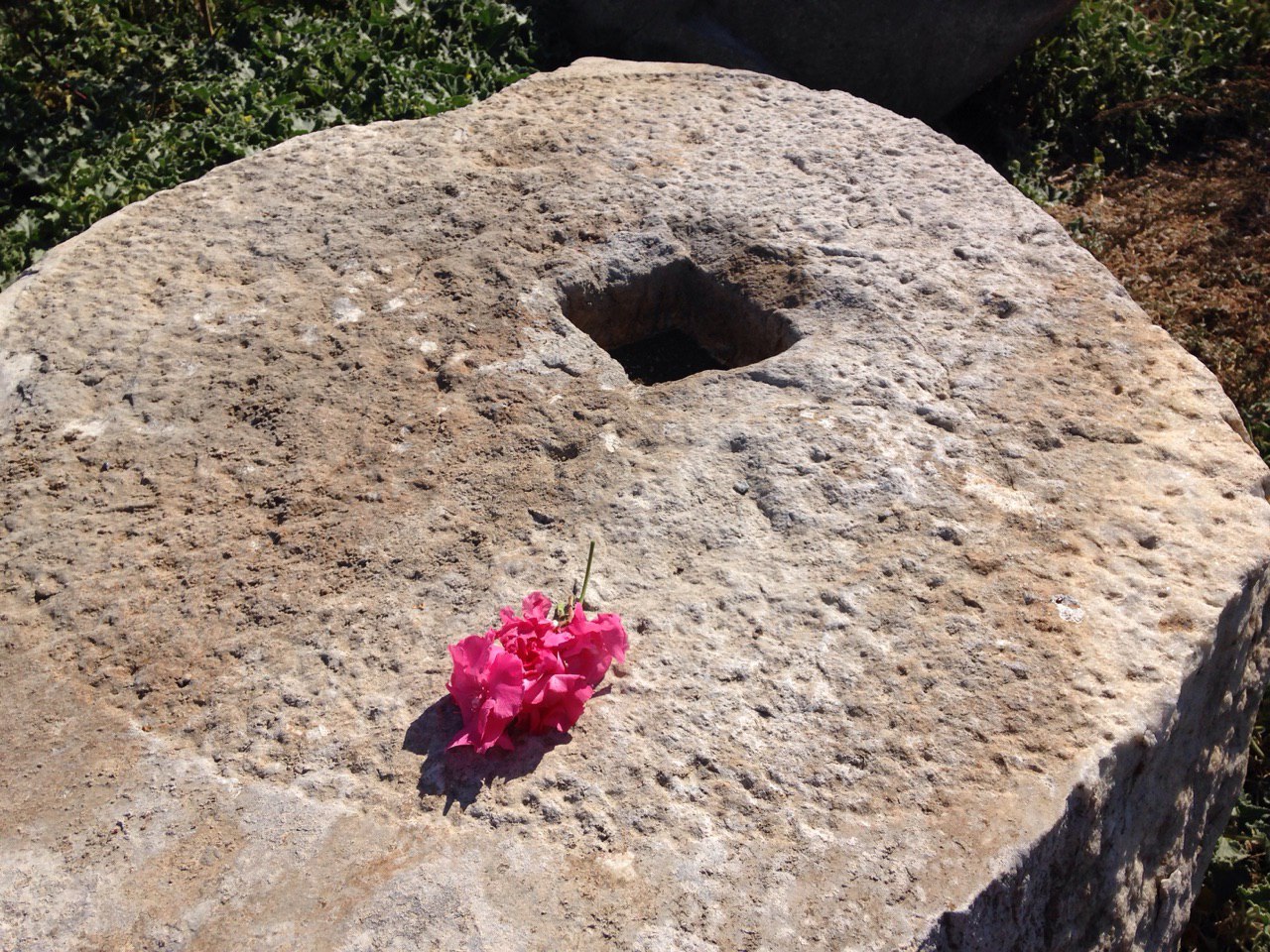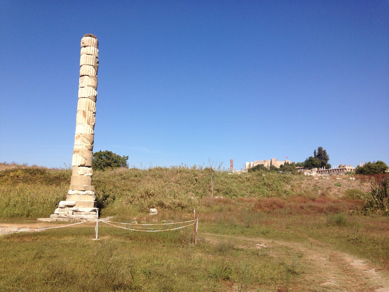 Я, неожиданно для себя, спросила у русскоговорящего гида: - Где храм Артемиды? Оказалось не в Эфесе, а ближе к Сельчуку. После Эфеса я туда и направилась. Водитель долмуши(маршрутки) остановился на дороге с указателем Артемида. И я пошла по дороге к славному месту. Дорога шла через высокие, цветущие кусты с розовыми цветами с нежным, сладким запахом. Я сорвала несколько розочек. Настроение волшебное.