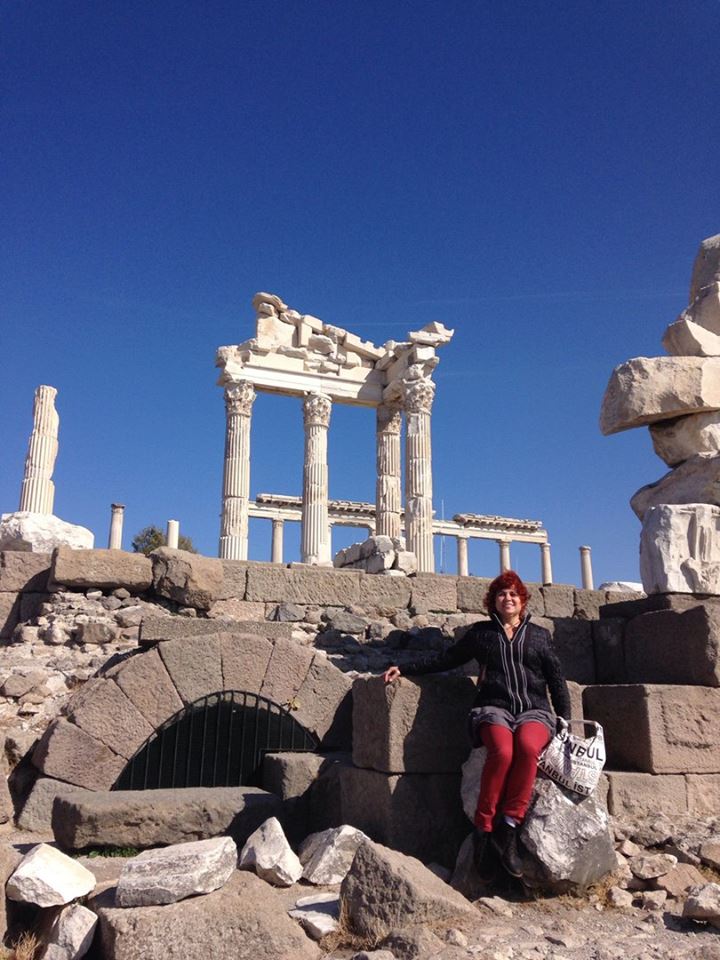 Пошла к Асклепиону. Это храм Асклепия - прародина медицины. По пути зашла в Красную Базилику. Смотреть там нечего. Идут реставрационные работы. В центре двора в базилике стоит огромная статуя Сехмет - богини с головой львицы. Я не поняла к чему там египетская богиня.