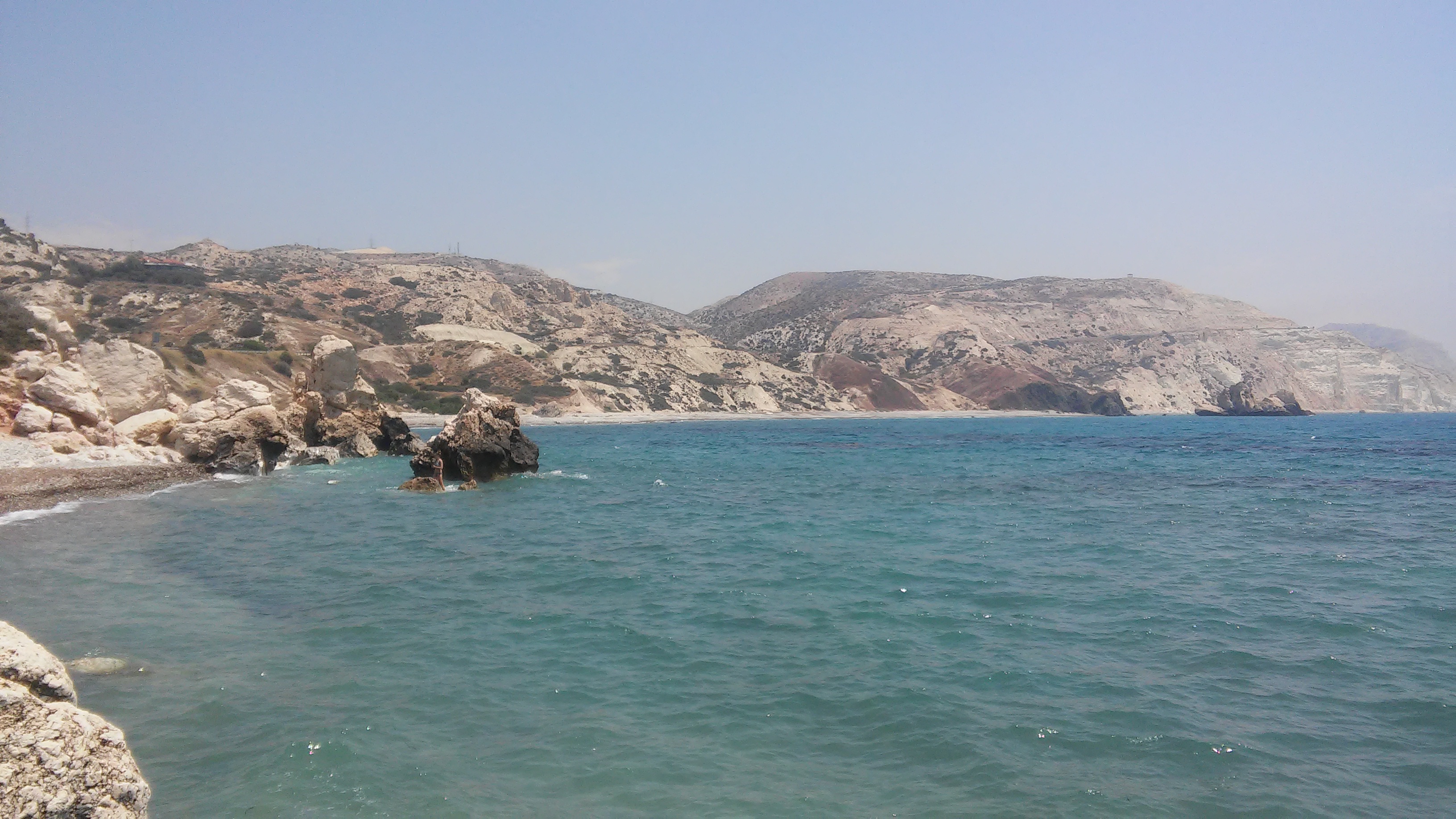 Второй раз я приезжаю на волшебный берег Афродиты. Меня встречает все то же очарование моря, ярко-синяя вода, разноцветные камушки в форме сердец больших маленьких. Здесь хочется петь и бегать по берегу. Но не то, что бегать, быстро ходить не получается - босиком больно ногам, ноги вязнут в песочно-каменистом берегу.