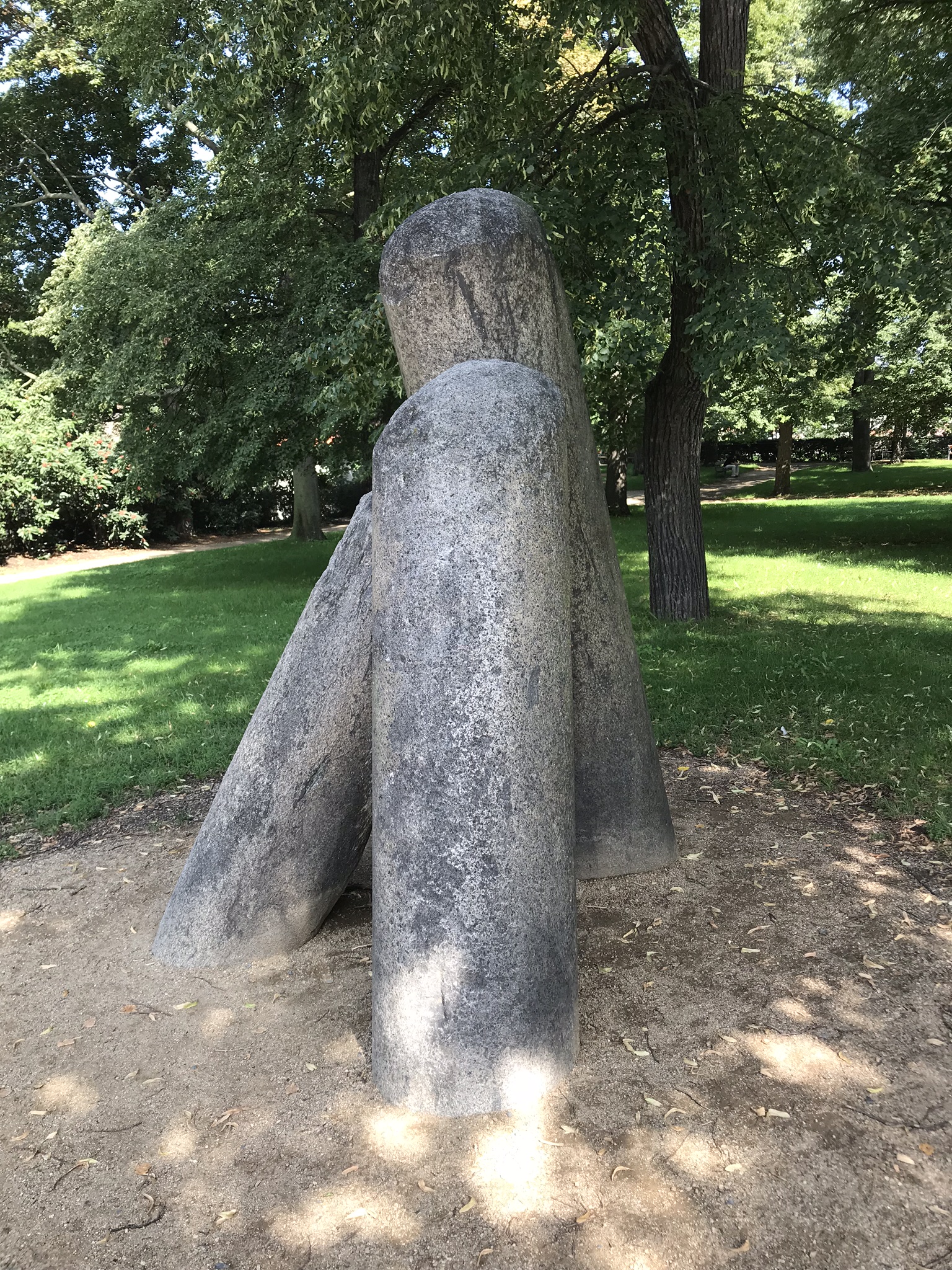 Идем по парку мимо трех столбов с которыми связана такая легенда. Однажды поспорили священник и демон. Последний проиграл спор. Демон притащил колонну бросил и разбил ее на три части.