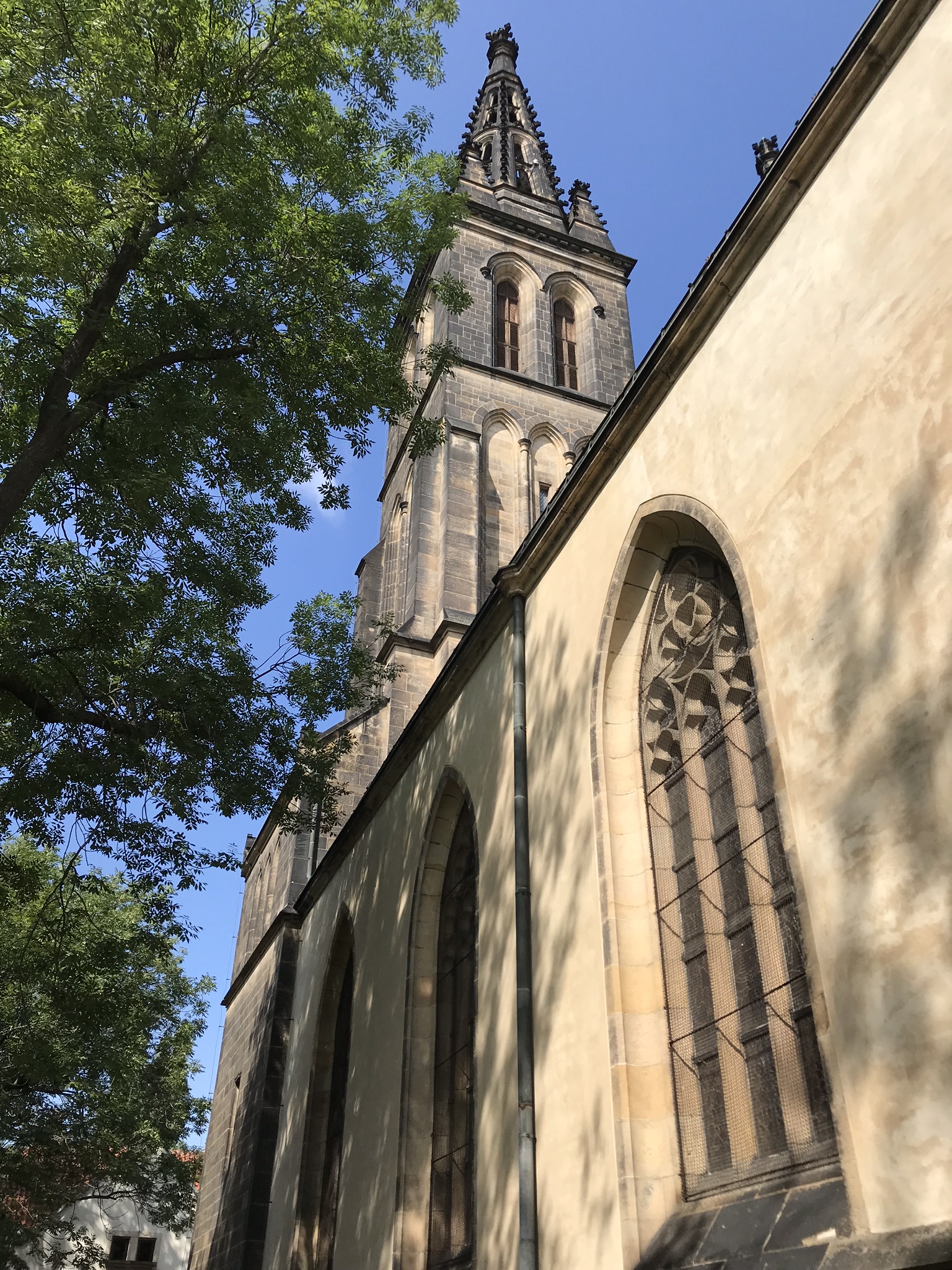 Саркофаг, в котором раньше были мощи святого Лонгина находится внутри собора. На смотровой площадке, на высоком речном берегу княжна Либуше делала свои предсказания.